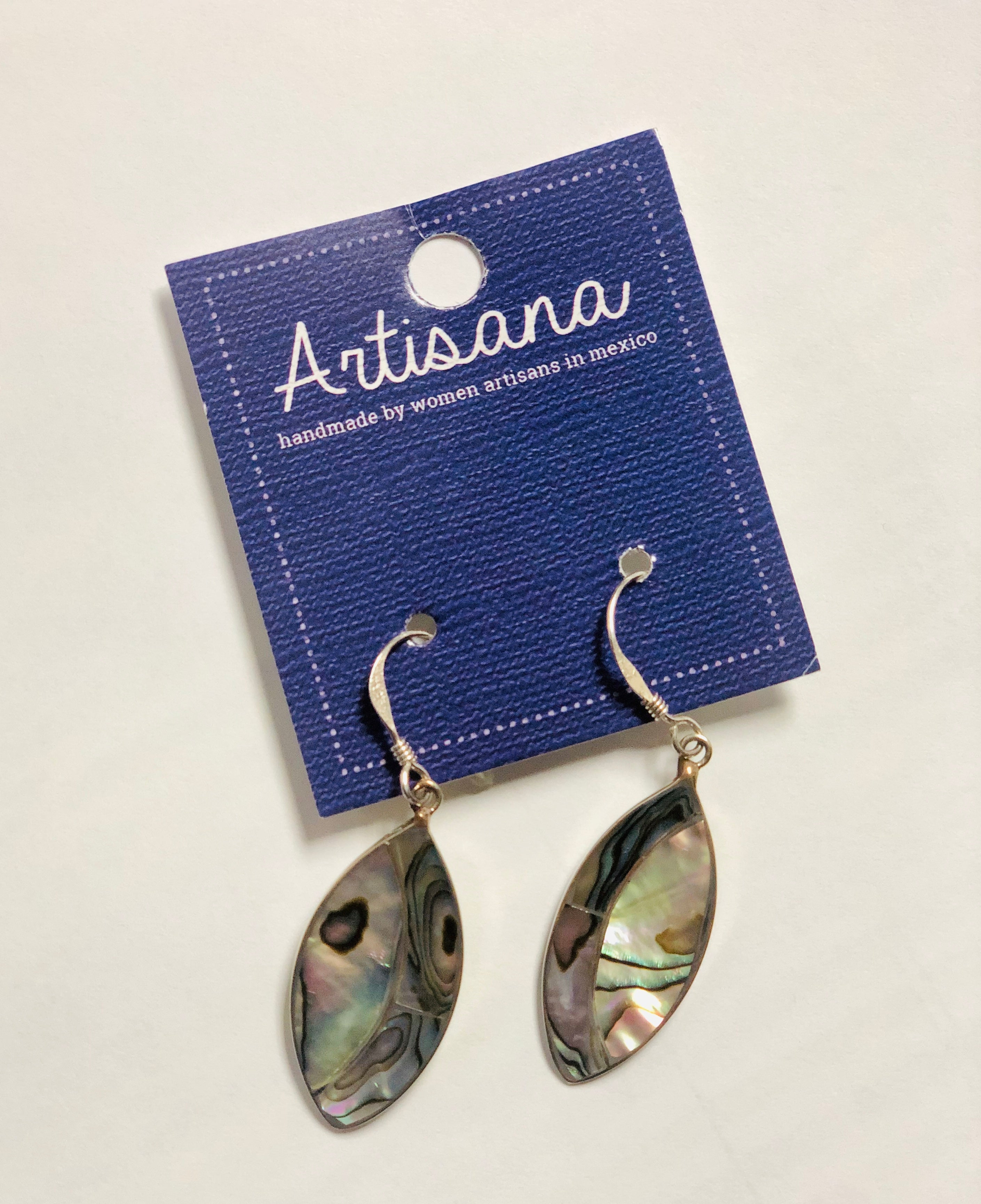 Sterling silver and Abalone Ellipse Earrings. Made in Mexico by Fair Trade women artisans.