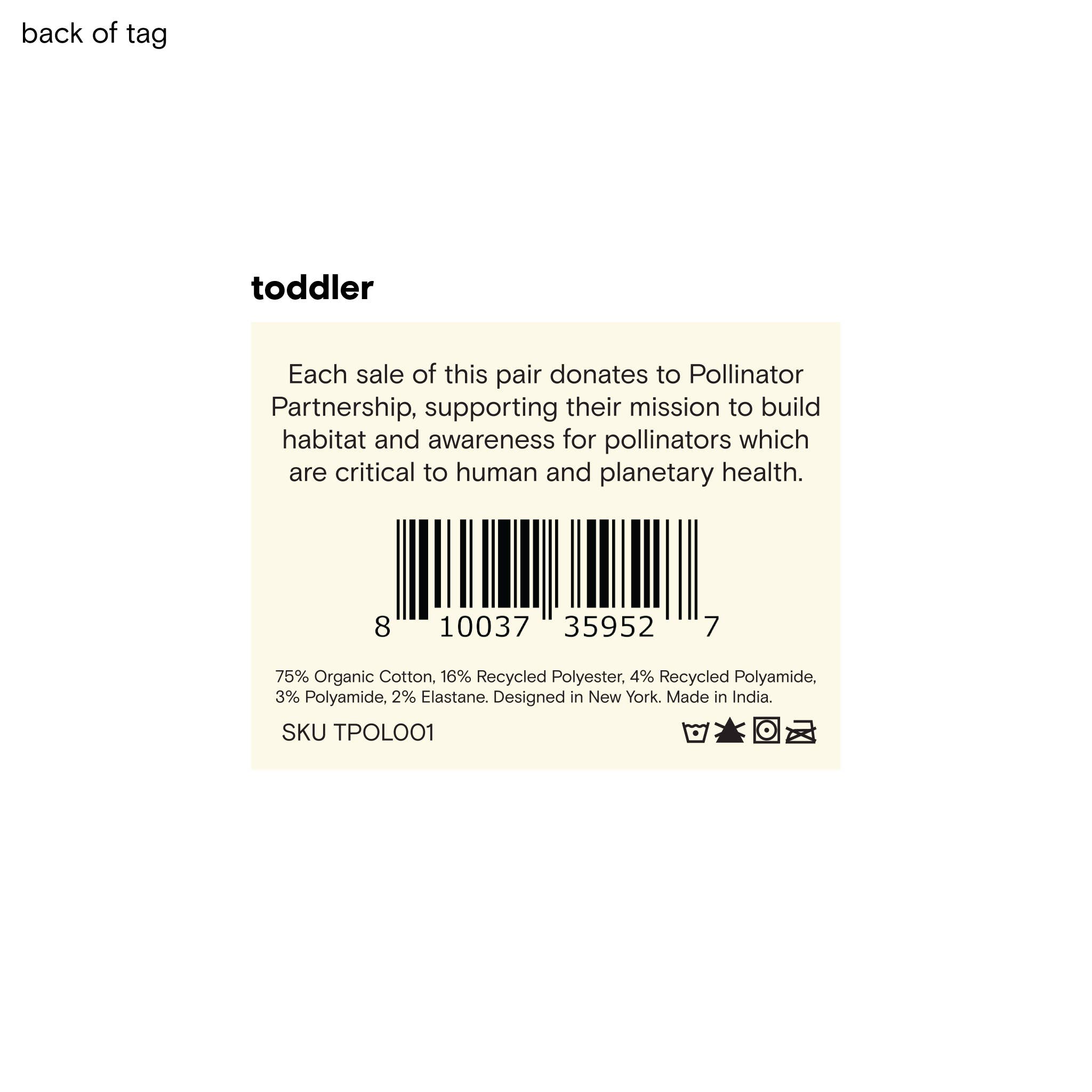 Let your little one bee the star of their hive with these buzz-worthy socks! This blue design is just buzzing with fun, and with adorable bees and a cozy fit, these socks will make every step feel as light as a bumblebee. • Each sale of this pair donates to Pollinator Partnership, supporting their mission to build habitat and awareness for pollinators which are critical to food security as well as human and planetary health. • Toddler (1-3Y) fits kids shoe sizes 3-7k. Preschool (4-6Y) fits kids shoe sizes 9-13k. Youth (7-10Y) fits kids shoe sizes 2-5. • Toddler pair has silicone grippers for sliding. • Sustainable • Certified Organic • Certified Fairtrade • Certified Vegan • Members of 1% for the Planet