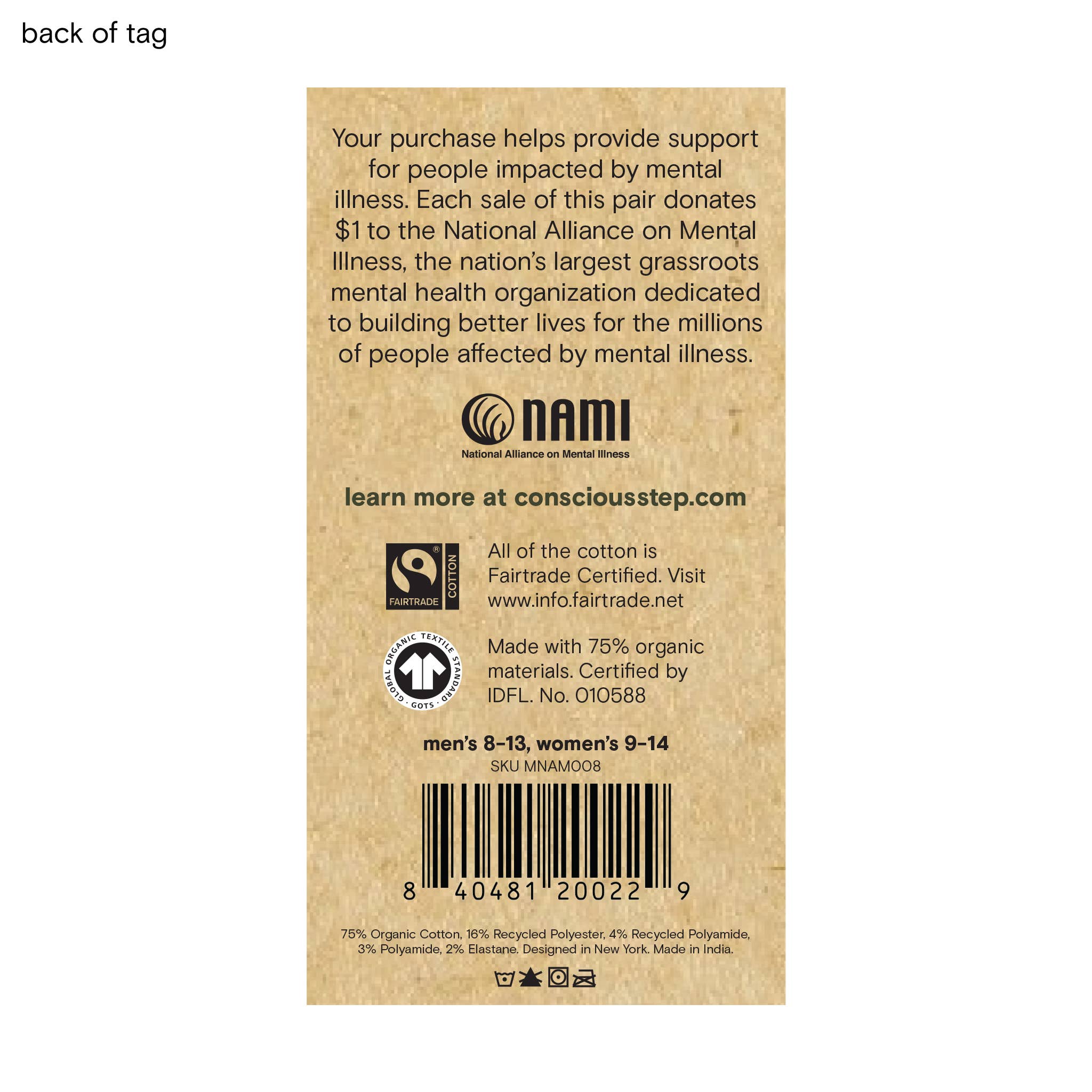 Who said ghosts have to be scary? These ghoulishly good black ghost socks bring the perfect mix of spooky and cute, making them a must-have for Halloween lovers. • Each pair donates $1 to NAMI to support their work to destigmatize mental health issues. • Small fits women’s US shoe sizes 5-9, men's US shoe sizes 4-8, and EU shoe sizes 36-40. • Medium fits women’s US shoe sizes 9-14, men's US shoe sizes 8-13, and EU shoe sizes 41-47. • Sustainable • Certified Organic • Certified Fairtrade • Certified Vegan • Members of 1% for the Planet