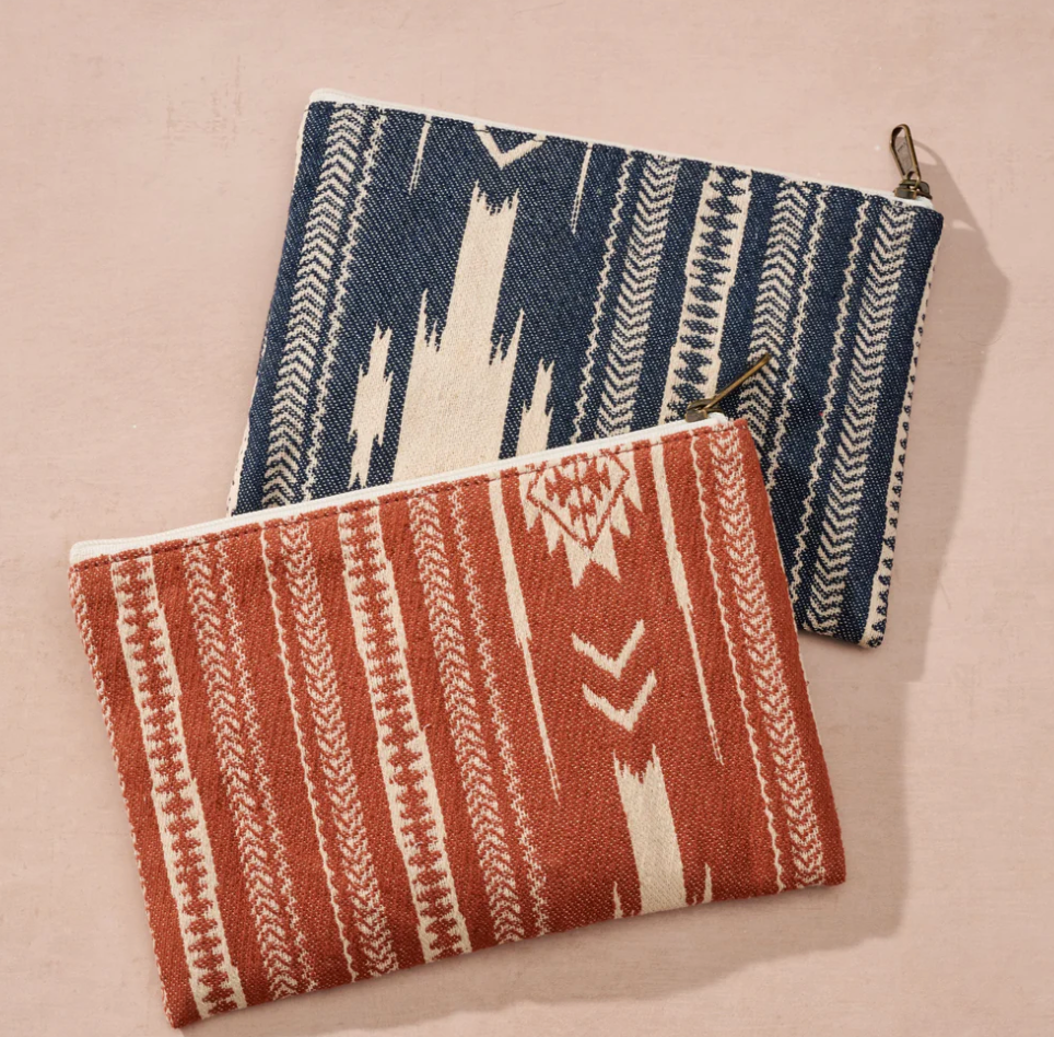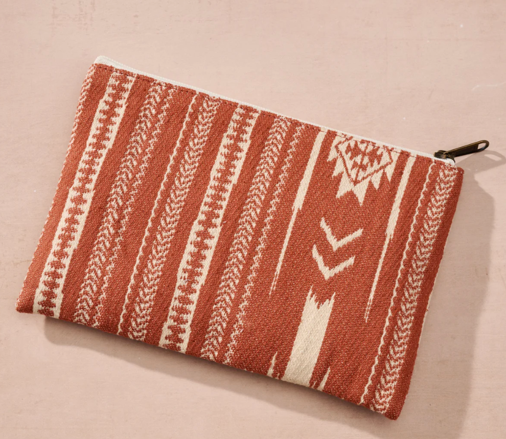 Get organized with this awesome drop in bag! Beautifully crafted from cotton, this handy zippered clutch will keep all your essentials at your fingertips. A cool rust-colored pattern and lined interior make it a fashionable, must-have accessory for make-up, change or other smaller items. A Ten Thousand Villages Exclusive handcrafted in India.