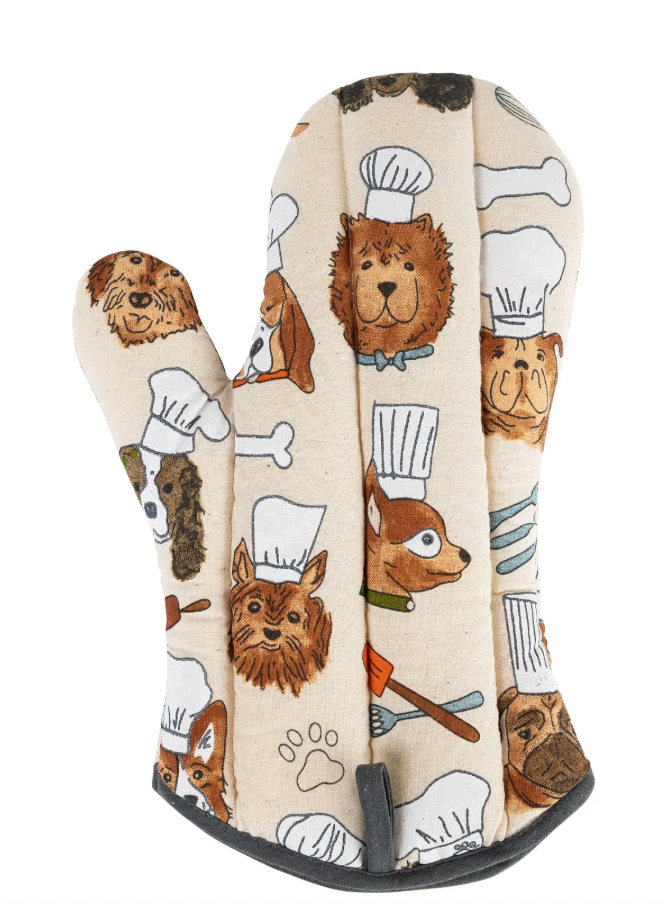 In collaboration with The Tote Project, a social enterprise working to empower victims of human trafficking, we bring you the Dog Chefs Oven Mitt! Featuring dogs with chef hats, bones, paw prints and kitchen utensils, this oven mitt and its sister products - an apron and a tea towel - are here for those folks who can't get enough of (wo)man's best friend.