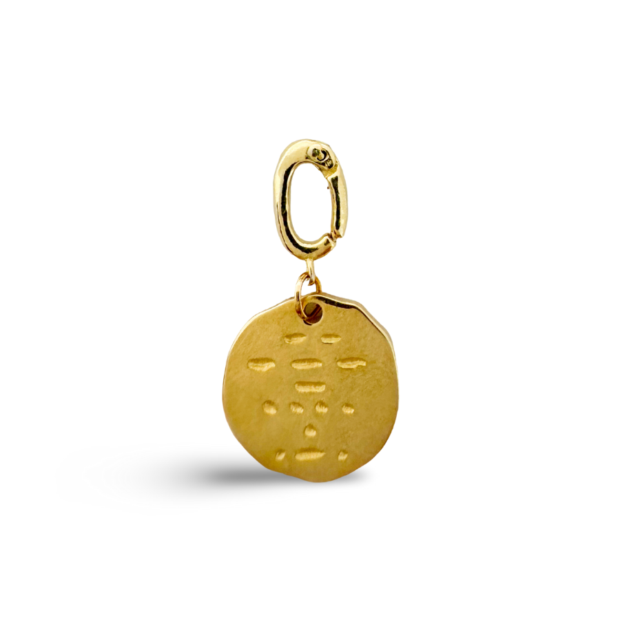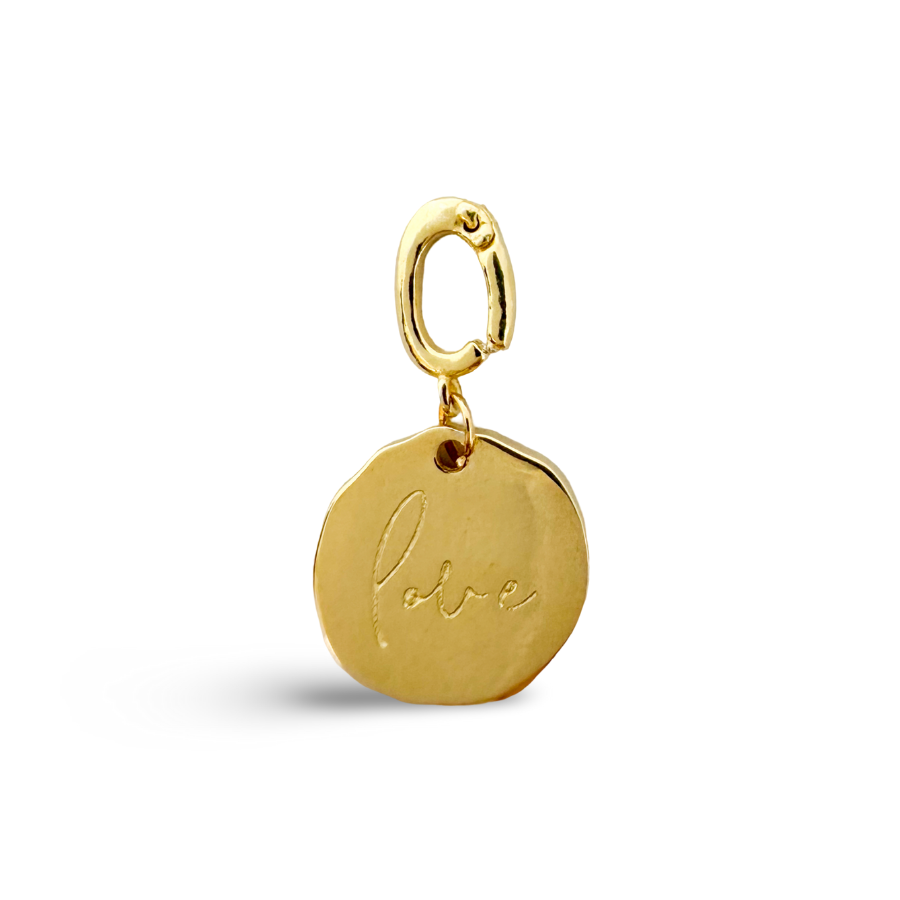 Add a touch of love to your jewelry collection with our Classic Gold Charm. One side reads "love" while the other side displays morse code symbols. Made with a 14K gold...