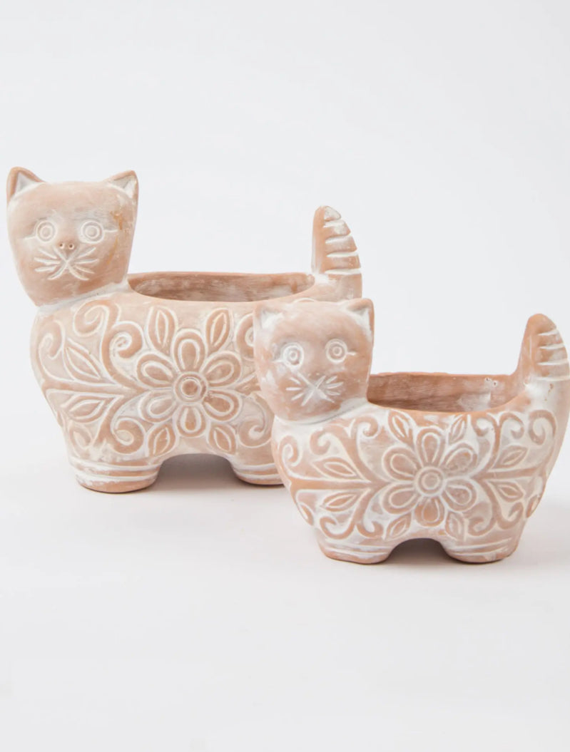The perfect pot for cat nip! The Garden Kitty Planter is handcrafted in Bangladesh where makers from Corr-The Jute Works showcase their skill in ceramics by crafting each white-washed terracotta planter by hand.