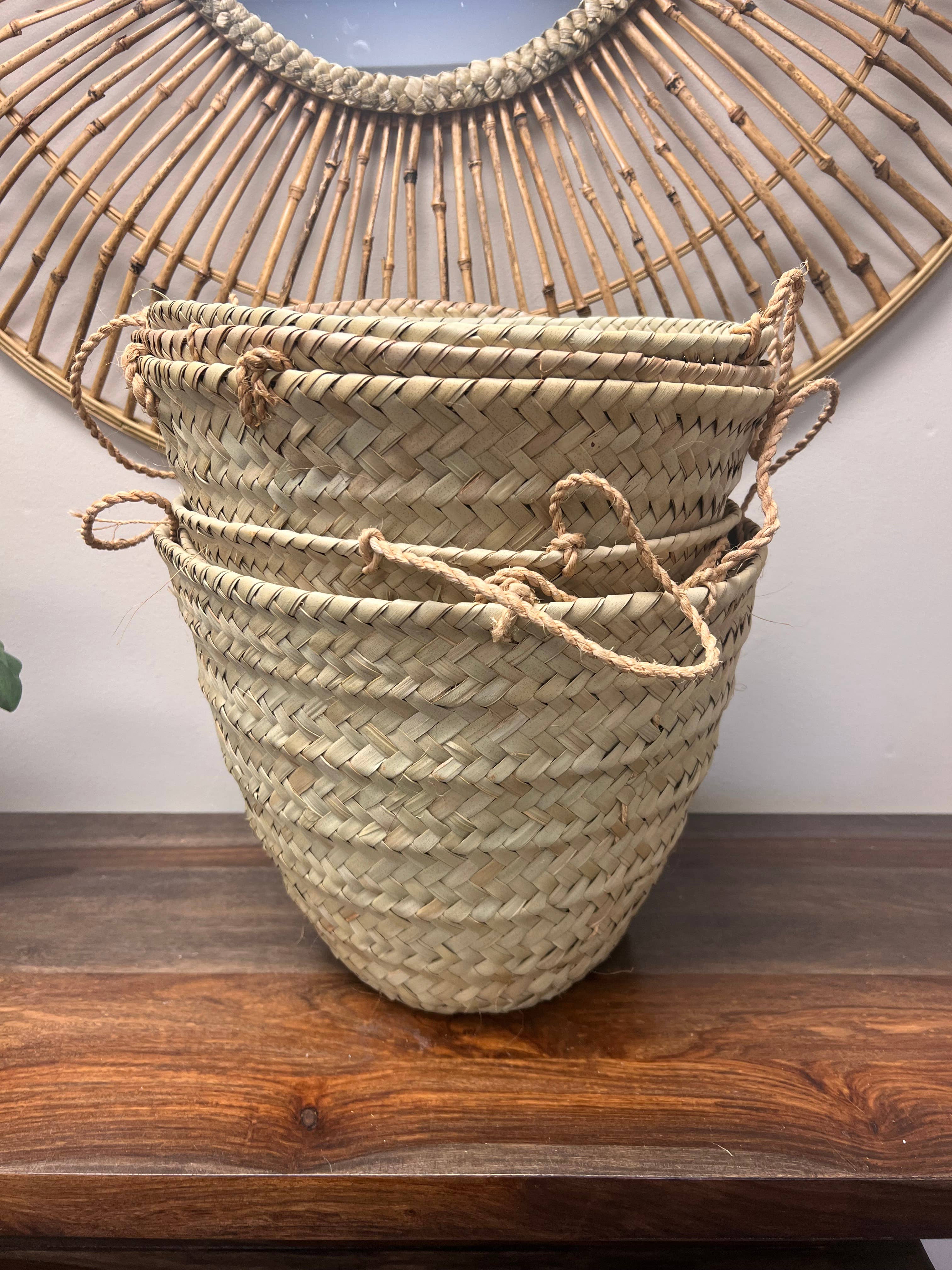 Container or utility baskets like these are durable and can be put to multiple uses, such as: a beach bag, carry-on or weekender, crafting or knitting caddy, farmer's market basket, grocery or shopping bag, hamper or laundry basket, handbag or tote, home decor basket, laptop carrier, picnic basket, pot planter, tabletop centerpiece, or for storage, to name a few!
