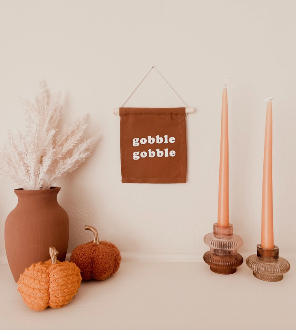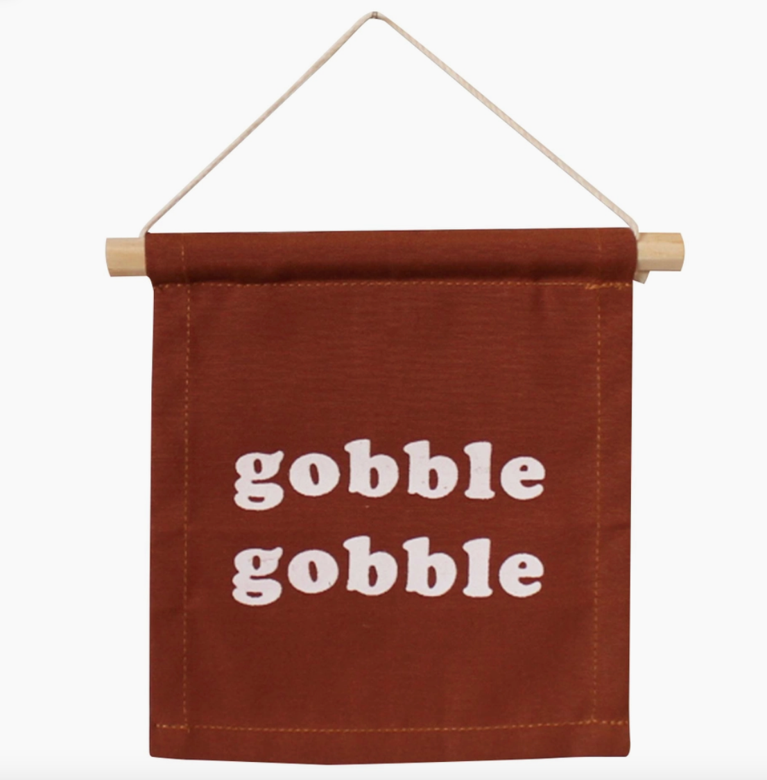 d e s c r i p t i o n: "Gobble Gobble" Hang Sign | Thanksgiving Wall Flag. Made in Kenya by empowered artisans.