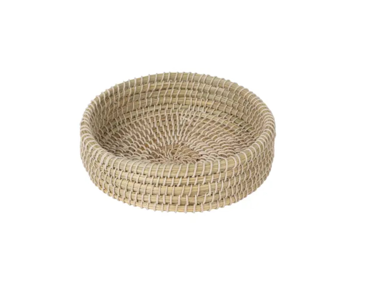 An incredibly versatile basket, the Kaisa Grass Tray 10" is handcrafted by makers in Bangladesh of kaisa grass and cotton wrapping. Whether you're looking for a fruit basket, entry valet tray, desktop organizer, tablescape basket or any other clutter corral, the Kaisa Grass Tray in two different sizes can do the job with style and sustainability.