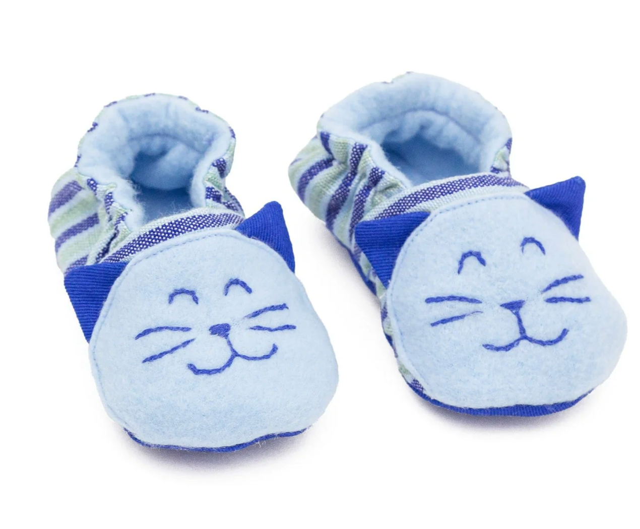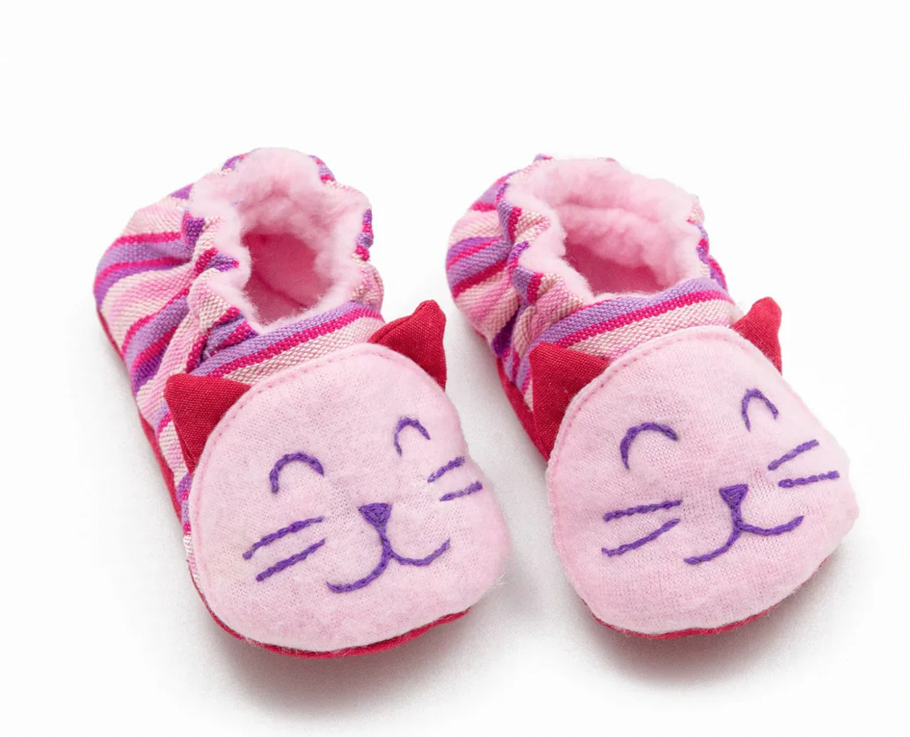 Our best-selling baby booties now come in an adorable kitty design - how cute! A soft fleece kitty and traditional Guatemalan fabric line the exterior, and each pair has a flannel interior to keep your little one's toes warm. One size fits most infants, what a perfect gift for expecting mothers! In addition, there are no irritating closures - a light elastic in the back will keep these in place. As always, Handmade and Fair Trade!