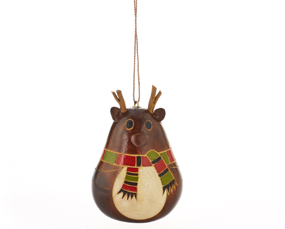 This little reindeer ornament is a sweet addition to any holiday tree. Natural gourd ornaments are burned, etched, and painted by hand. Dried seeds inside rattle gently when shaken. Sizes and...