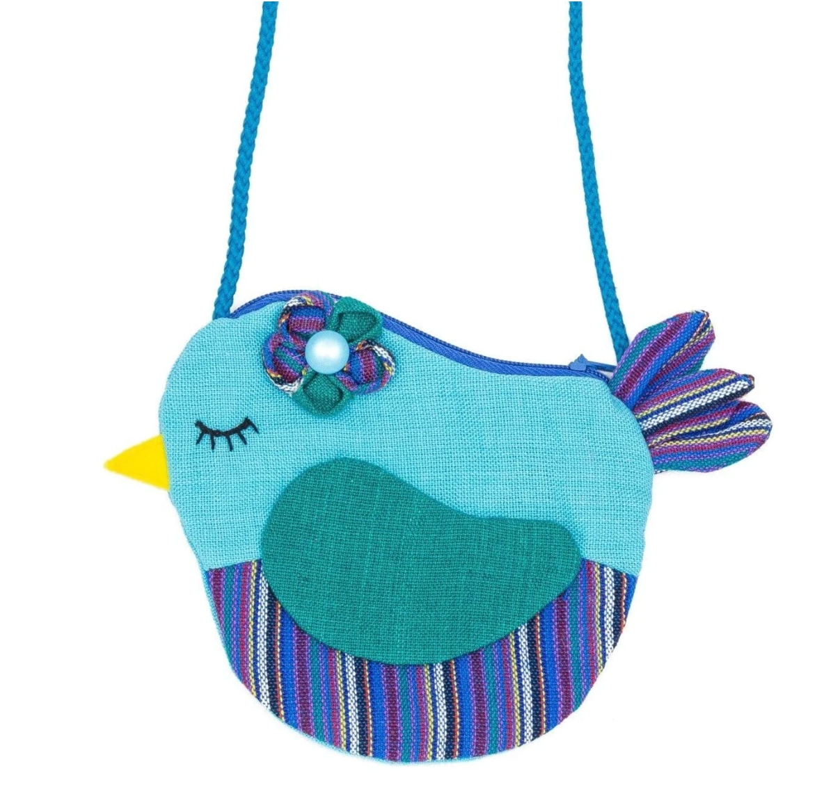 Chirp Chirp. This adorable birdie purse is made from traditional Guatemalan fabrics and is accented with a small flower. A zippered top keeps your riches intact! The long strap makes it perfect for girls ready to carry their very own purse. Also handy for carrying an I.D. and credit cards. Handmade and Fair Trade.