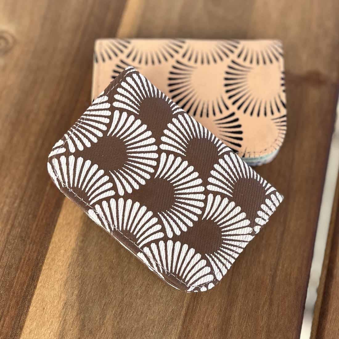 Cotton Screen Print - Multiple Pockets - Contrasting Cotton Lining - Snap Closure 4” L x .75" W x 2.75" H Perfect for use as a business cardholder or as a small wallet. The unique, screen printed design is fun and fashionable. Each cotton fair trade card holder is hand printed and sewn. Perfect size for credit cards, driver's license, business cards! Cotton Screen Print Multiple Pockets Contrasting Cotton Lining Snap Closure 4” L x .75" W x 2.75" H