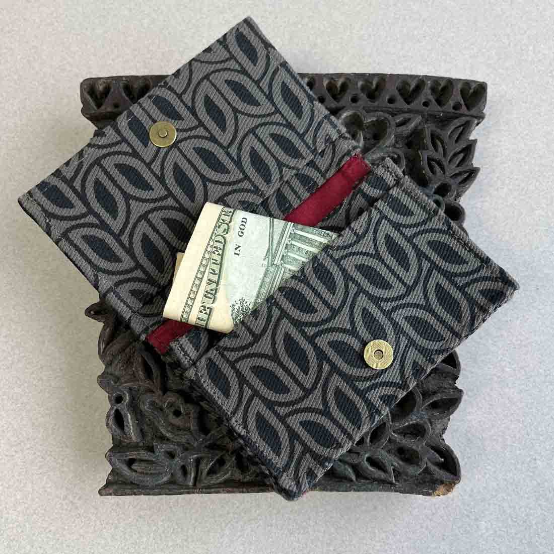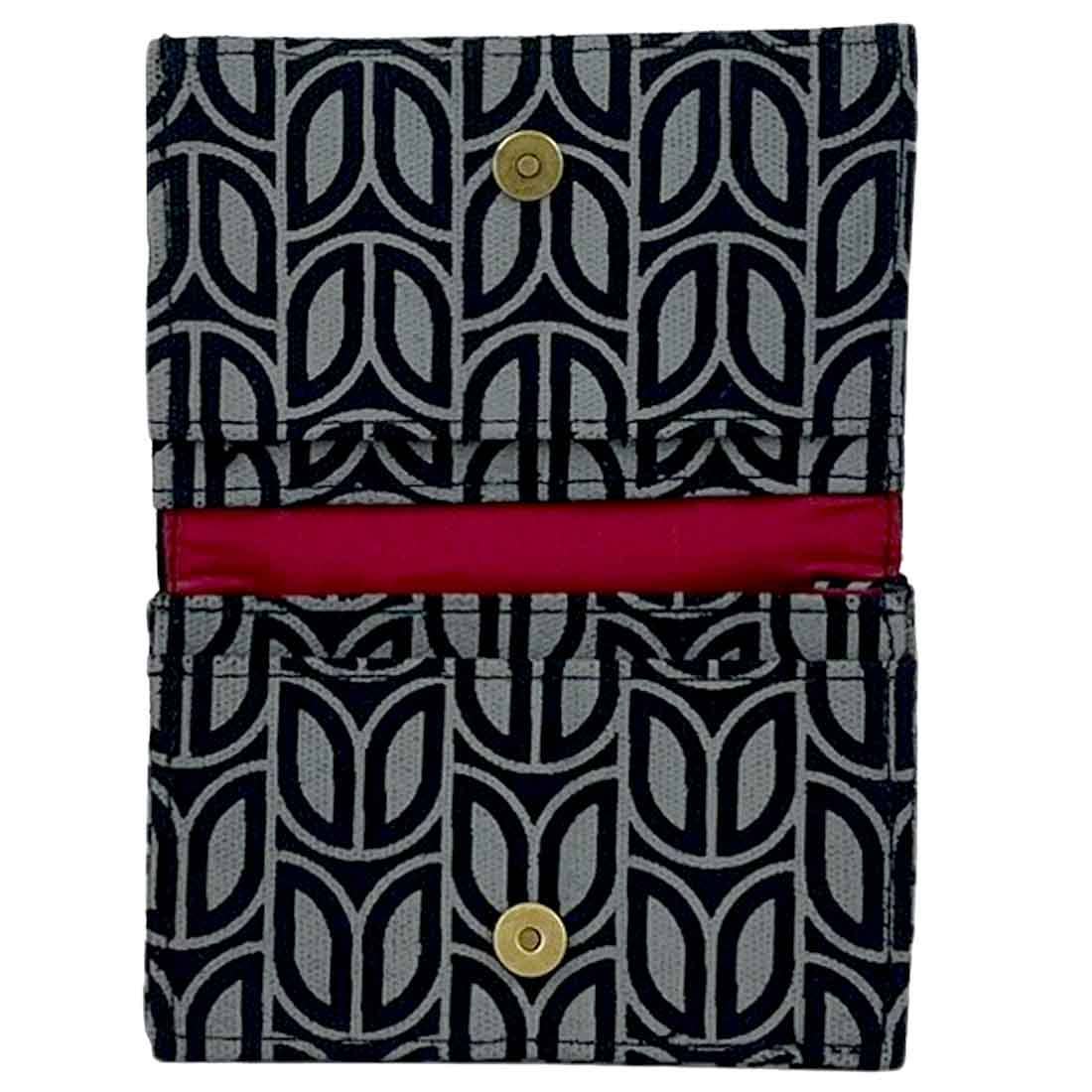 Cotton Screen Print – Multiple Interior Pockets - Contrasting Cotton Lining - Snap Closure 4" L x 0.5" W x 3" H Perfect for use as a business card holder or...