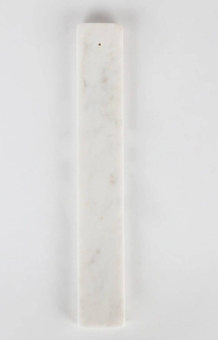 Handcrafted of white marble, the Marble Incense Holder is shaped in an arc with a small hole at one end to insert an incense stick. The stick is held at an angle over the marble arc to catch any incense ash.