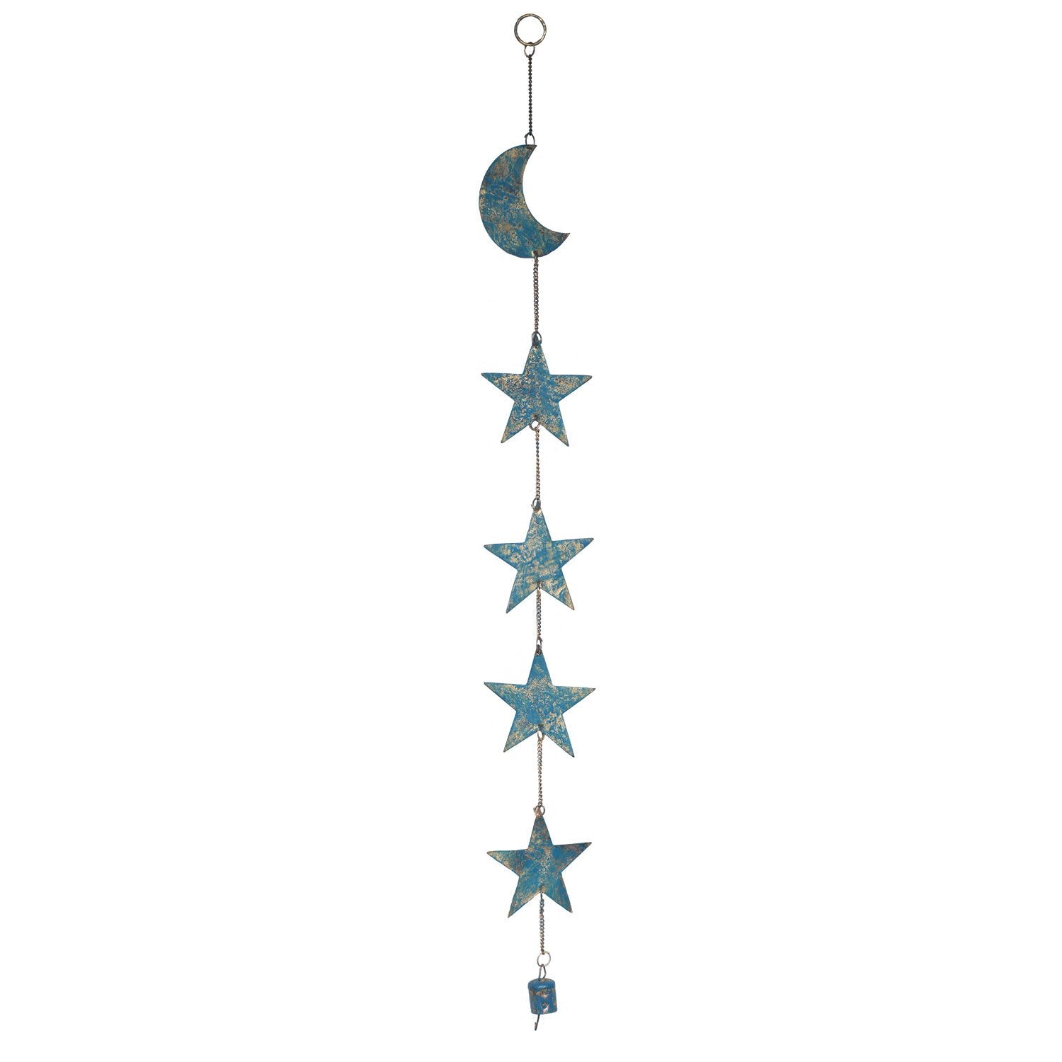 Metal chimes are made from flat sheets/pieces of scrap metal and created by using basic hand tools and machinery. Metal work is a craft practiced in Behat in the northern state of Uttar Pradesh, India. Made from reused metal. Soldered together for strength and durability. Coated in a protective color layer. Indoor & outdoor use. Size: 30" L x 4" W