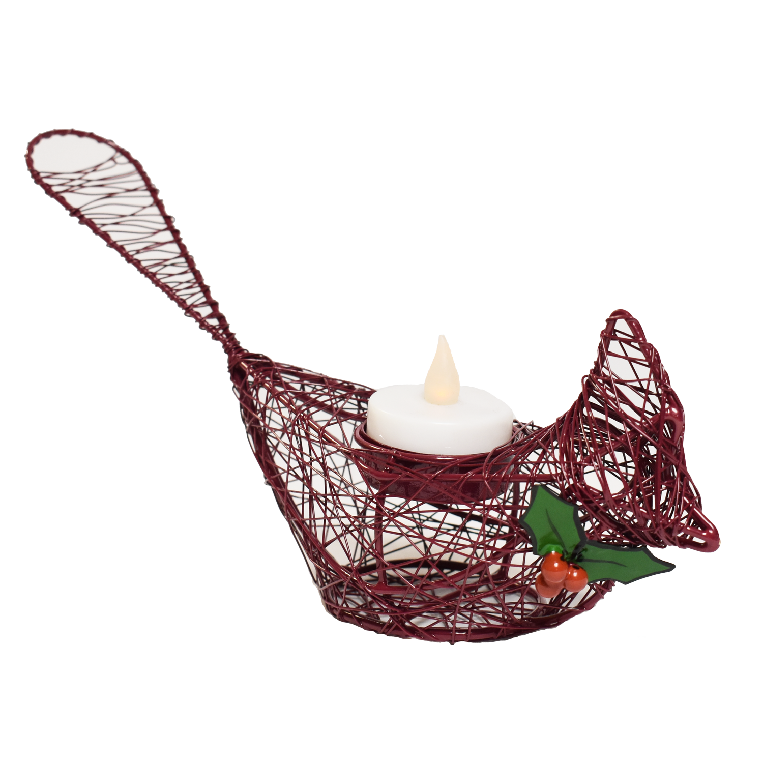 Wire and metal crafting is made by artisans at Johra & Bohra Handicrafts in Behat in the northern state of Uttar Pradesh, India. These products are all wrapped by hand and our artisans are always learning and designing new shapes for use. Made from reclaimed metal wire. Frame is soldered for durability. Wire is wrapped around frame. Coated in protective layer. Size: 8" L x 5" W. Candle not included .