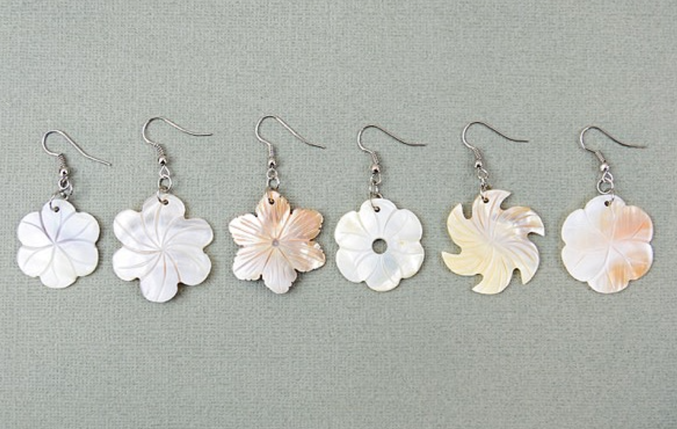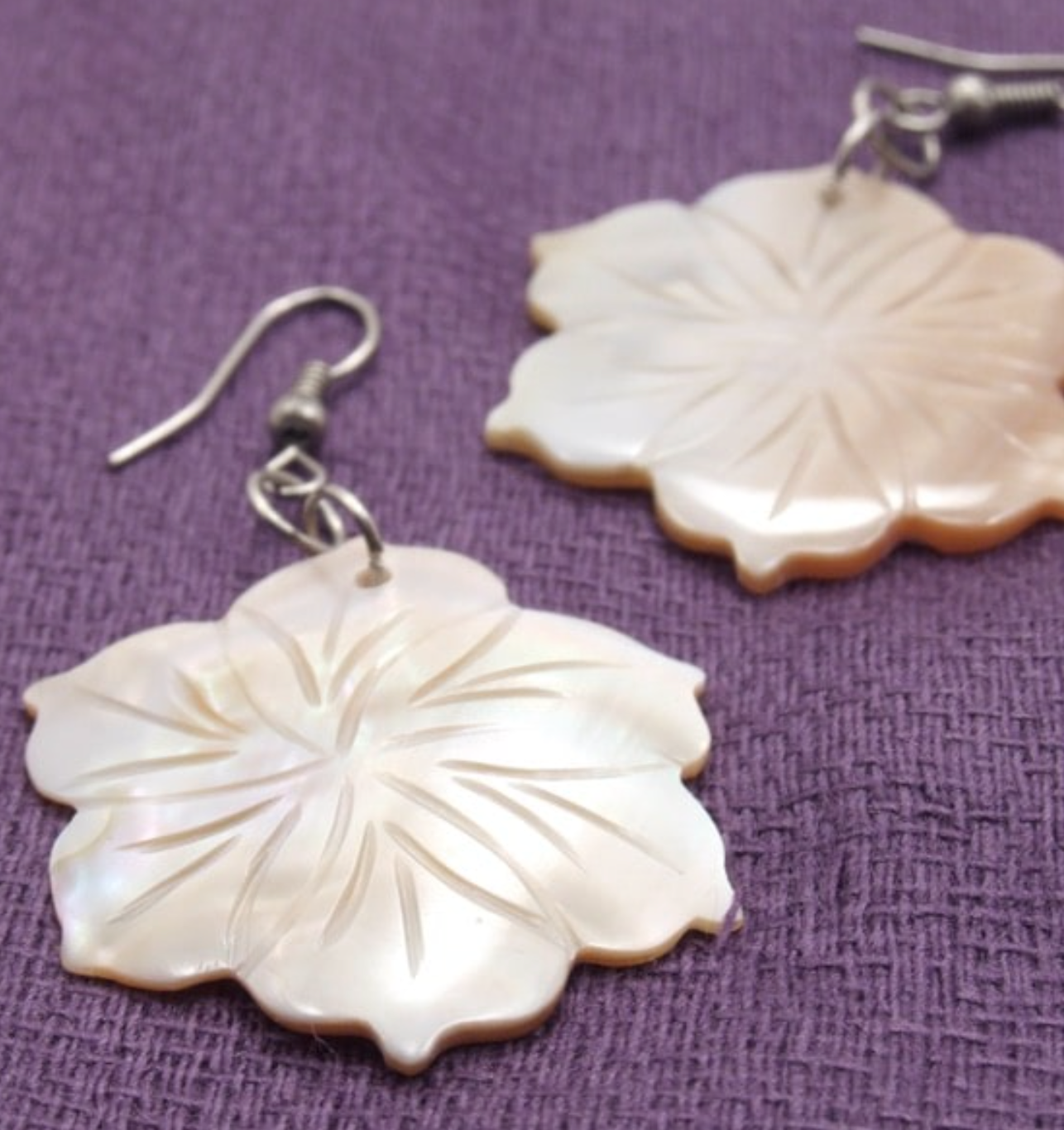Elegant earrings carved out of mother of pearl. Made in Peru