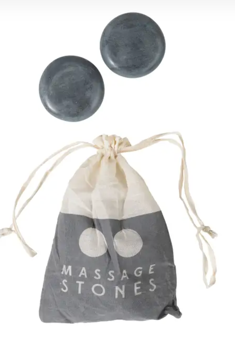 Use this set of Palewa Massage Stones in your self‒care routine to release tension and decrease inflammation. Chilled stones are best for decreasing inflammation, while stones heated in warm‒hot water work well to release tension. Stones can also be used to massage deep into tight muscles. Palewa is a soapstone which retains heat well and has a high magnesium content; it is also naturally non‒porous, making it ideal for massage stones. These stones were hand‒carved and polished by makers of Agra Bazar in India, a workshop which ensures fair wages and safe working conditions for stone artisans.