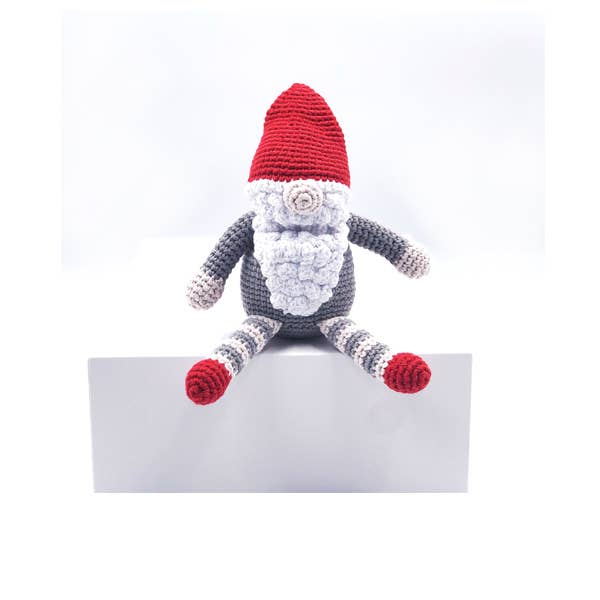 The gnomes are working extra hard to spread holiday cheer this year! With his bright red stocking cap and long white beard, he is cozy and comfy and full of good cheer. Handmade with soft cotton yarn, he's perfect for tiny hands to grab and shake. As always, Pebble toys are Fair Trade, Eco-friendly and sustainable. Perfect stocking stuffer or gift topper.