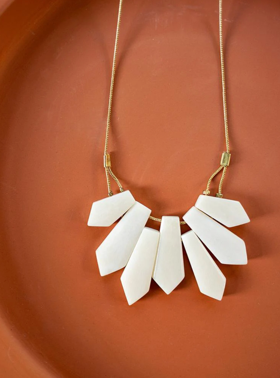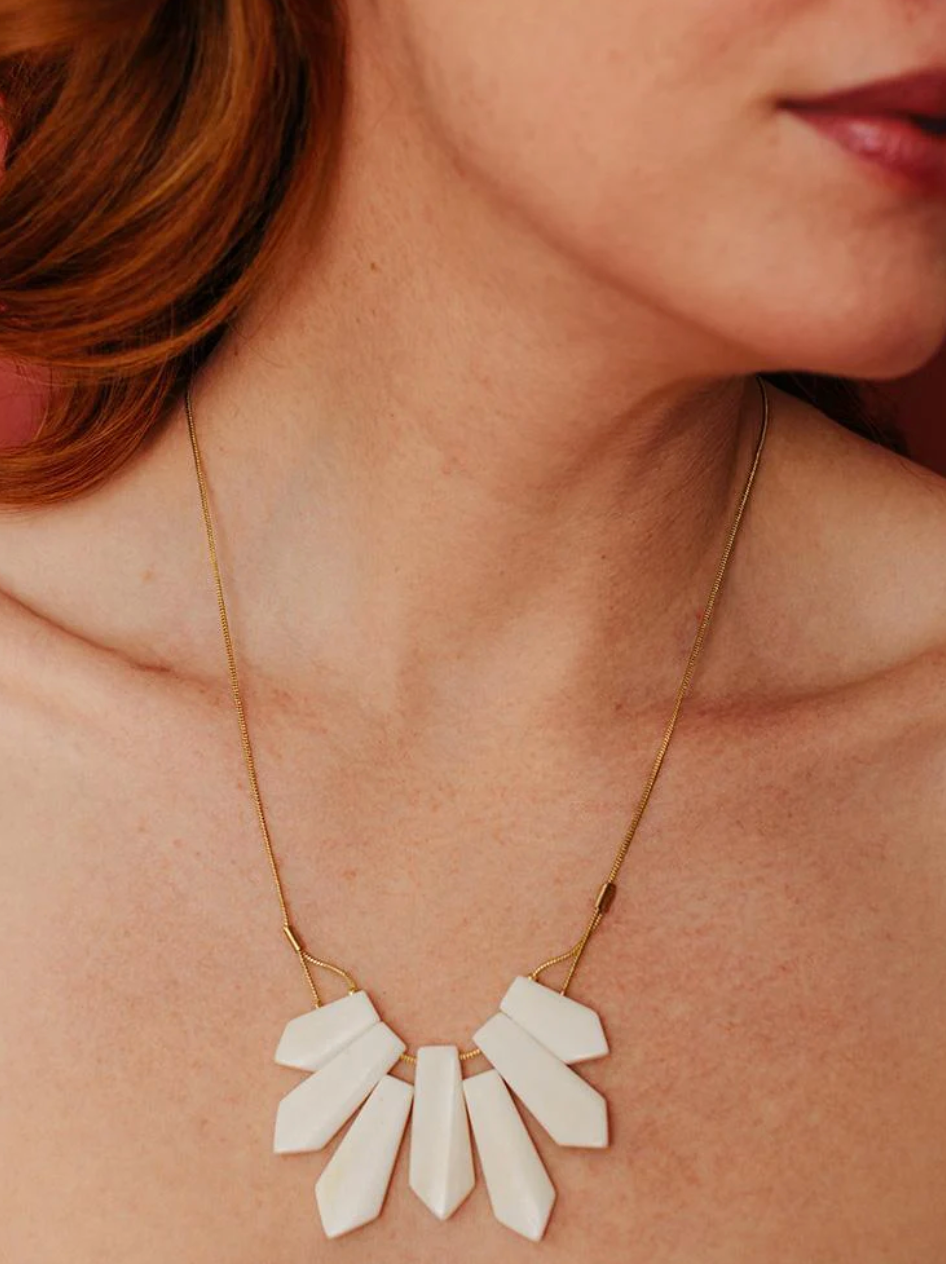 Who doesn't need a bold geometric statement necklace? Style it with a simple dress as a statement piece, or pair it with a printed dress for a vibrant ensemble.