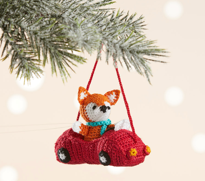 Start your engines! This crafty fox drives a classic red racecar, all while wearing a darling blue scarf. Fox is removable! Crafted by an all-female artisan group whose income helps fund medicine and their children's education. Dimensions: 3"h.