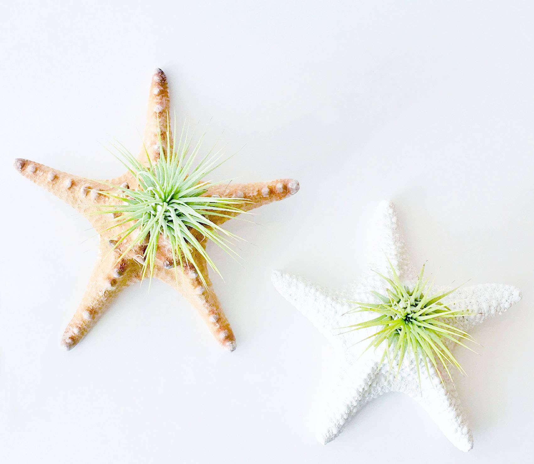 Air Plant attached to center of starfish and ready to hang- Comes with a sawtooth hanger attached to back for easy hanging! Measures approximately 6" Air Plant care: mist with water once a week and keep in bright in-direct light :) Made with love in Sunny California