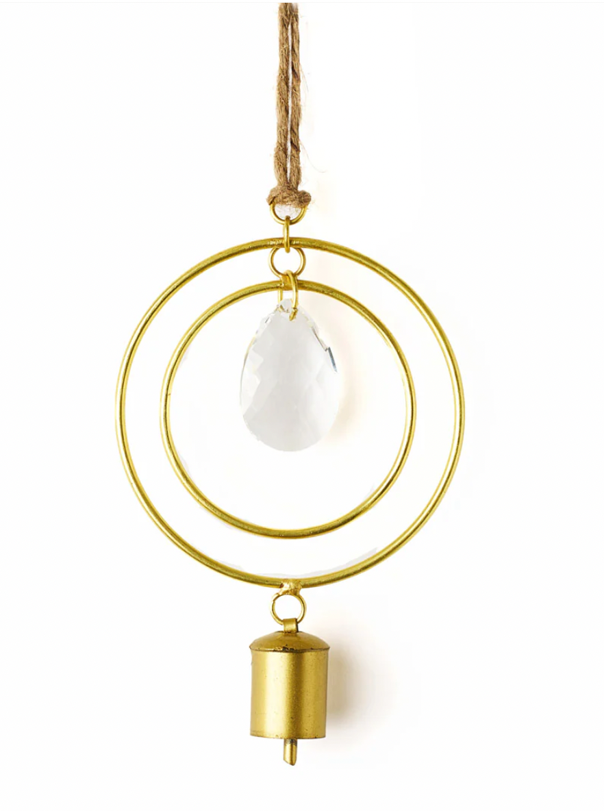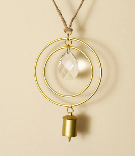 Catch the beautiful hues of sun rays through windows or on a patio or balcony with our Surya Two Circle Crystal Suncatcher Wind Chime. Surya means sun in Hindi. Display in a home window, on a patio, balcony or tree in the yard or make it a gift to someone who would appreciate good design and some sunshine in their life!