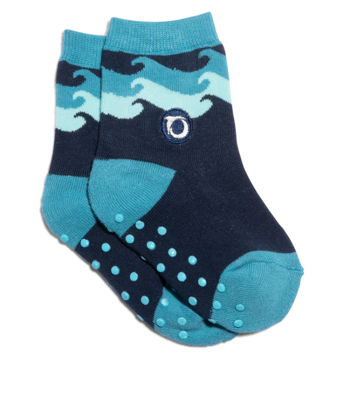 Surf’s up! Watch them catch a wave in this cozy pair, featuring the ocean’s various shades of blue and Oceana’s logo. Each pair advocates for healthy oceans with Oceana. Fairtrade Certified...