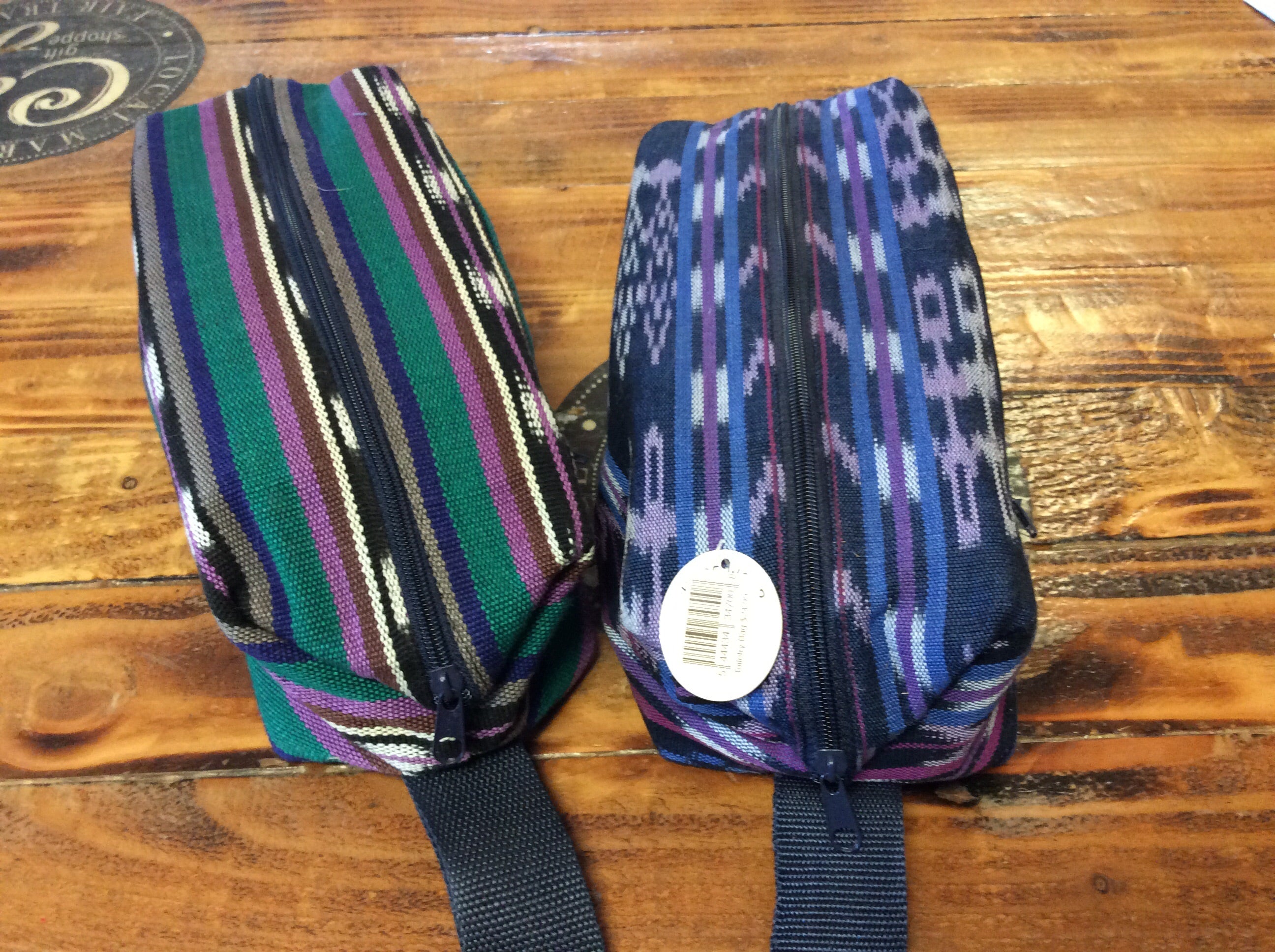 This unique Men's Toiletry Bag is a Guatemalan take on the Dopp Kit and it's a winner. A generous 10" L x 5" W x 4" H, this bag holds it all. There's also an outside zipper pocket approx. 7" L x 3.5 D. Features a nylon inner lining and a 1.5" wide sturdy webbing handle. 100% cotton woven Guatemalan fabric. Handmade and Fair Trade. Approximately 10" L x 5" W x 4" H 100% Cotton outside Lined w/ Nylon Additional exterior zippered pocket