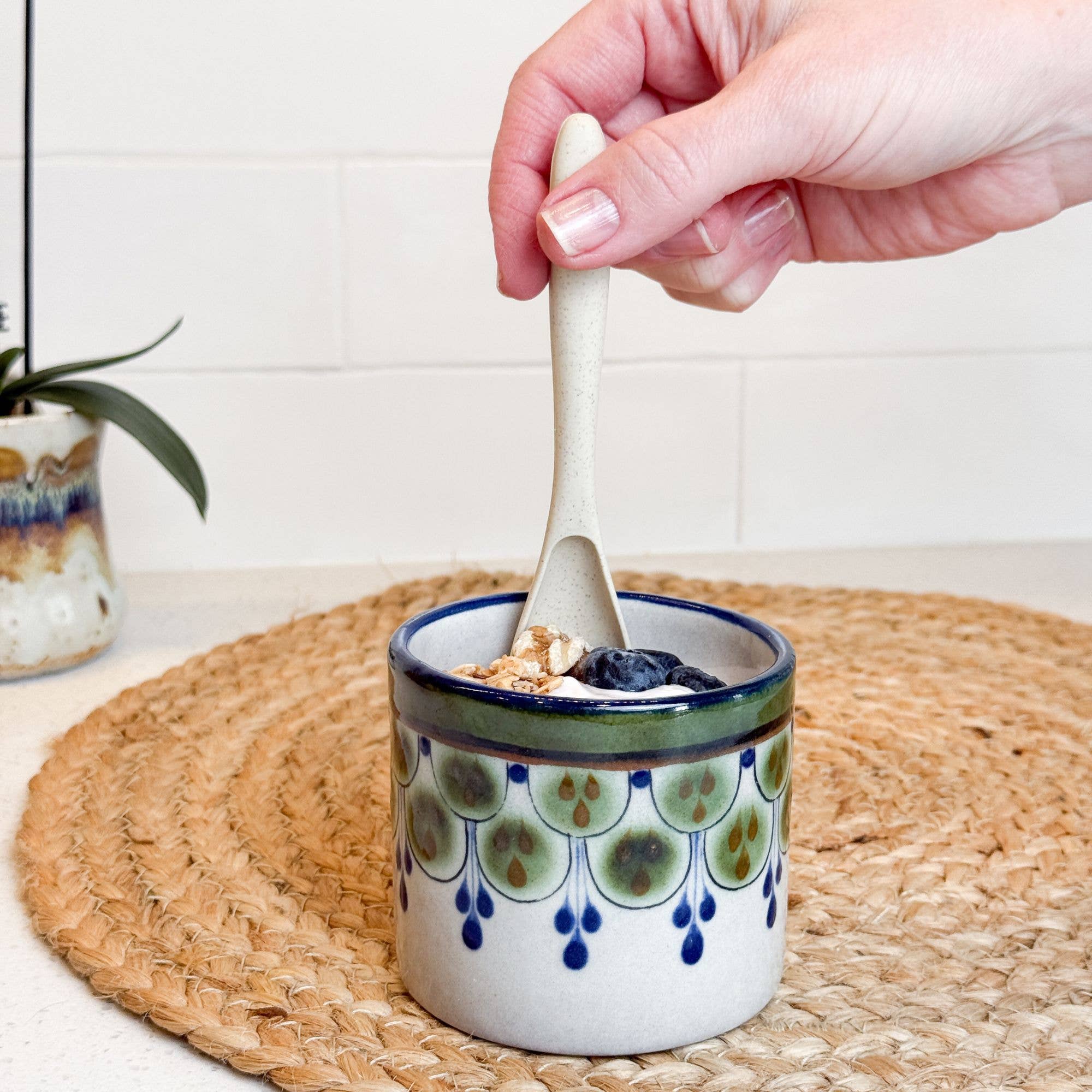 Short Guatemalan Stoneware Cup: Green w/ Blue