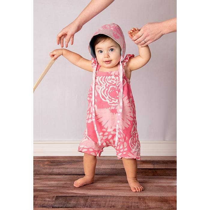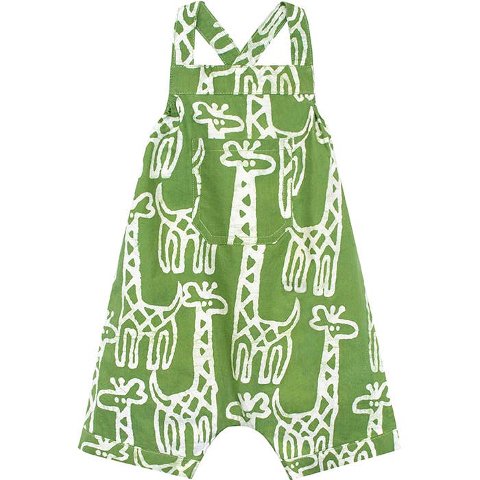 An adorable baby's romper, brimming with playful charm! With vibrant colors, cute prints, and comfy design, it's a bundle of joy for your little one, making every day a fun adventure! Adjustable straps with buttons at back Snap closure at inseam Front pocket 100% organic cotton