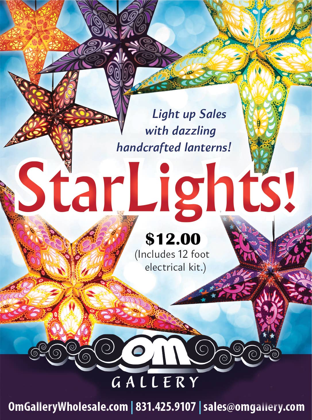 Our star lights are handcrafted in India by partners of the om gallery. They are available in many dazzling patterns. Made with 100% recycled materials, these hanging lanterns create ambiance and a clever accent lighting. "create your om". Dimensions: 24" x 24" x 8". Lighting Kit is Included. Available in black or white. Please indicate in the comments your cord color.