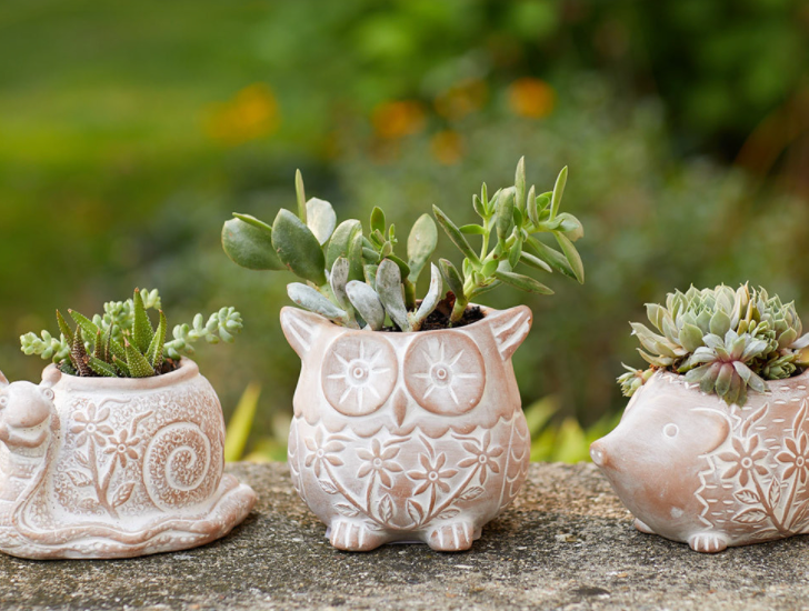 Whooo's looking for a new planter? This charming owl-shaped terracotta planter is whitewashed to highlight incredible handmade detail. Drainage hole. Perfect for outdoor use. 5"h x 5"l x 3"w.