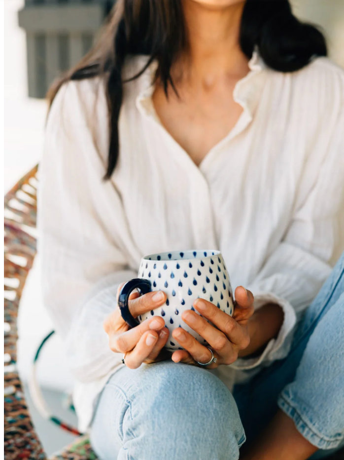 Warm up on a rainy day with a warm cup of tea. This mug is created and hand-painted in the village of Bat Trang, Vietnam, long-renowned for its pottery traditions. Here fair trade partnerships ensure that women artisans earn sustainable incomes by practicing the art of their ancestors.