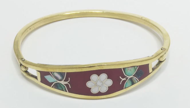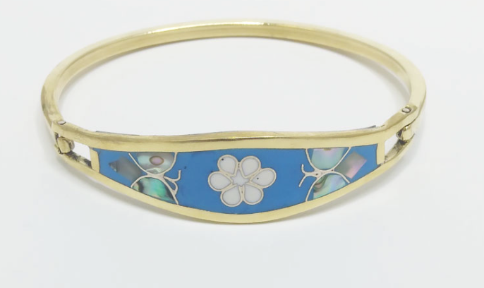 Rose Gold Margarita Inlaid Clip BraceletsA very popular accessory designed with a secure hidden clasp. Traditional designs from Taxco el Viejo, Guerrero Mexico. These beautiful Clip Bracelets are true folk art...