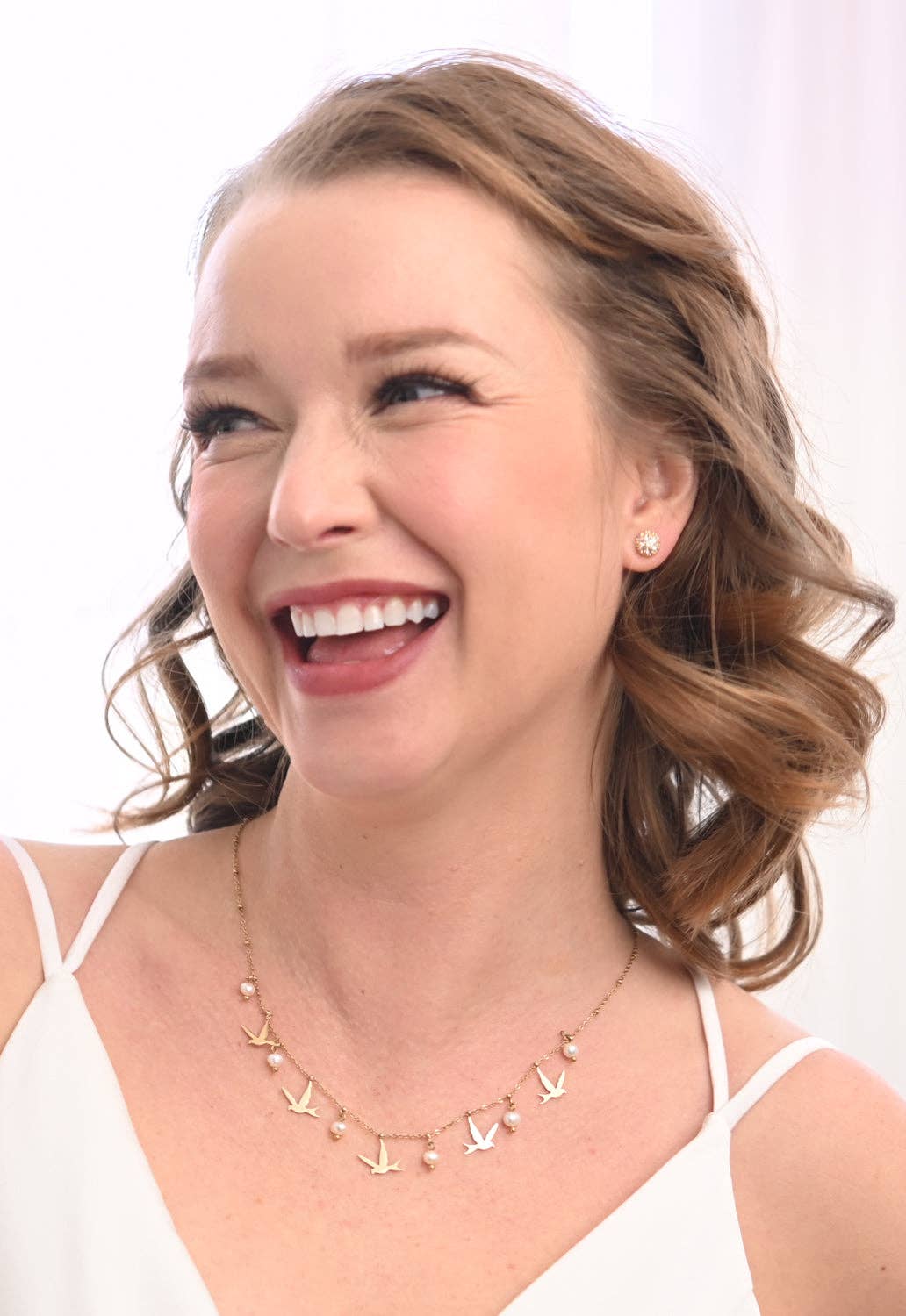 Shimmering with timeless elegance, the Lustre Blossom Studs bring a touch of brilliance to every moment. Each 14K gold-plated stud is crafted into a delicate dome of luminous zircon stones, blooming with radiance from every angle. Designed for effortless versatility, these studs are perfect for adding a refined sparkle to your everyday look or completing an elegant ensemble for special occasions. With every purchase, you help provide safe, dignified work and holistic care for survivors here, at Starfish Project, offering each a path to freedom and a brighter future. Box size and color may vary. Materials: 14k gold plated brass with zircon earrings Hypoallergenic; lead and cadmium free with nickel content less than 100 ppm. Size: 0.59 inches