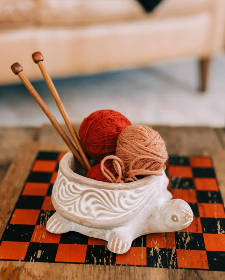 Meet the Tanish Turtle Planter! He features decorative designs in the side of his shell, he's handcrafted of terracotta, then whitewashed by artisans working with Corr ‒ The Jute Works in Bangladesh.