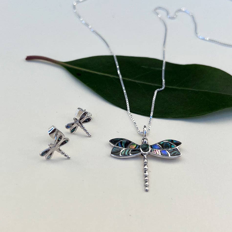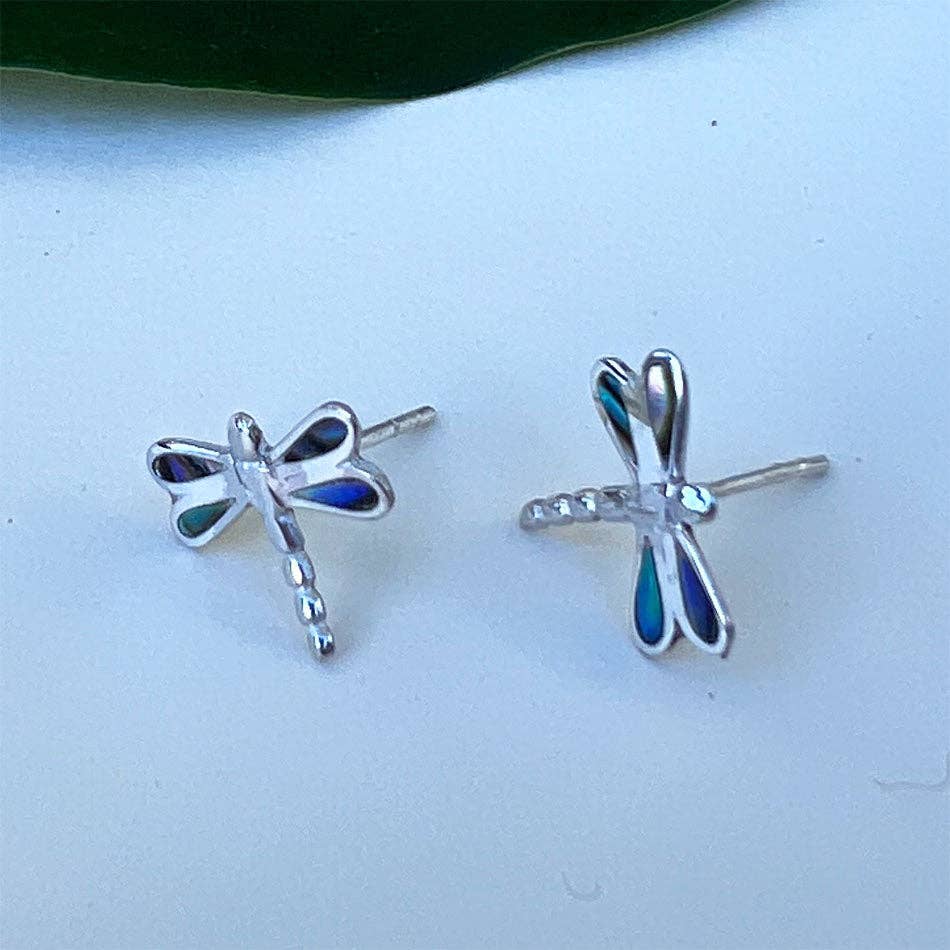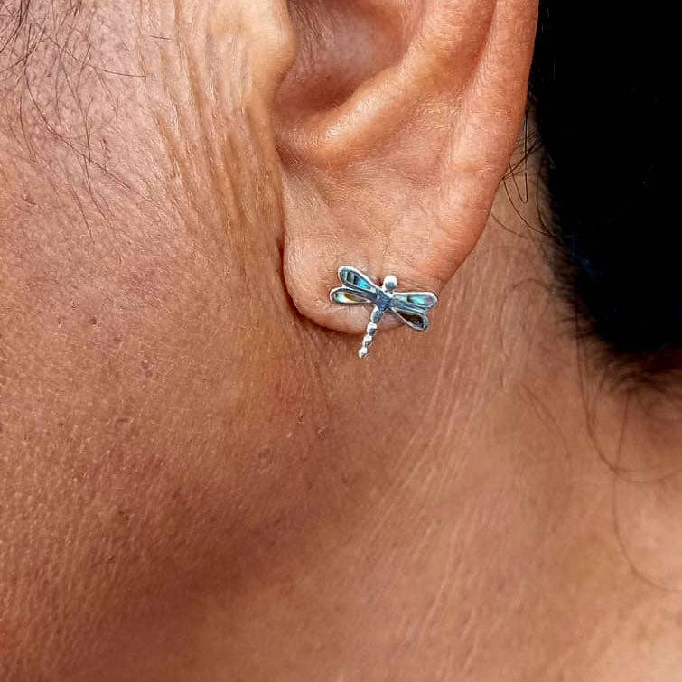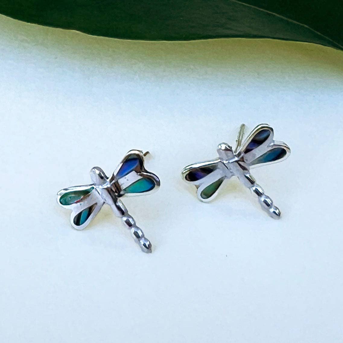 Women's Peace Collection - Abalone Dragonfly Studs - Sterling Silver, Indonesia