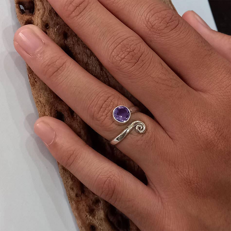 Amethyst Spiral Adjustable Ring - Sterling, Indonesia