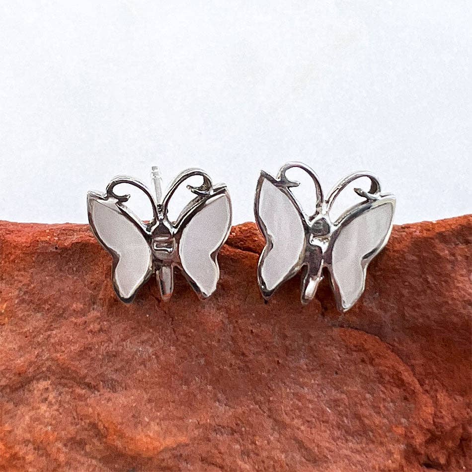 These exquisite little stud earrings are both dainty and elegant.  They feature a butterfly made of .925 sterling silver and mother-of-pearl. Women and girls alike who love butterflies will adore these....
