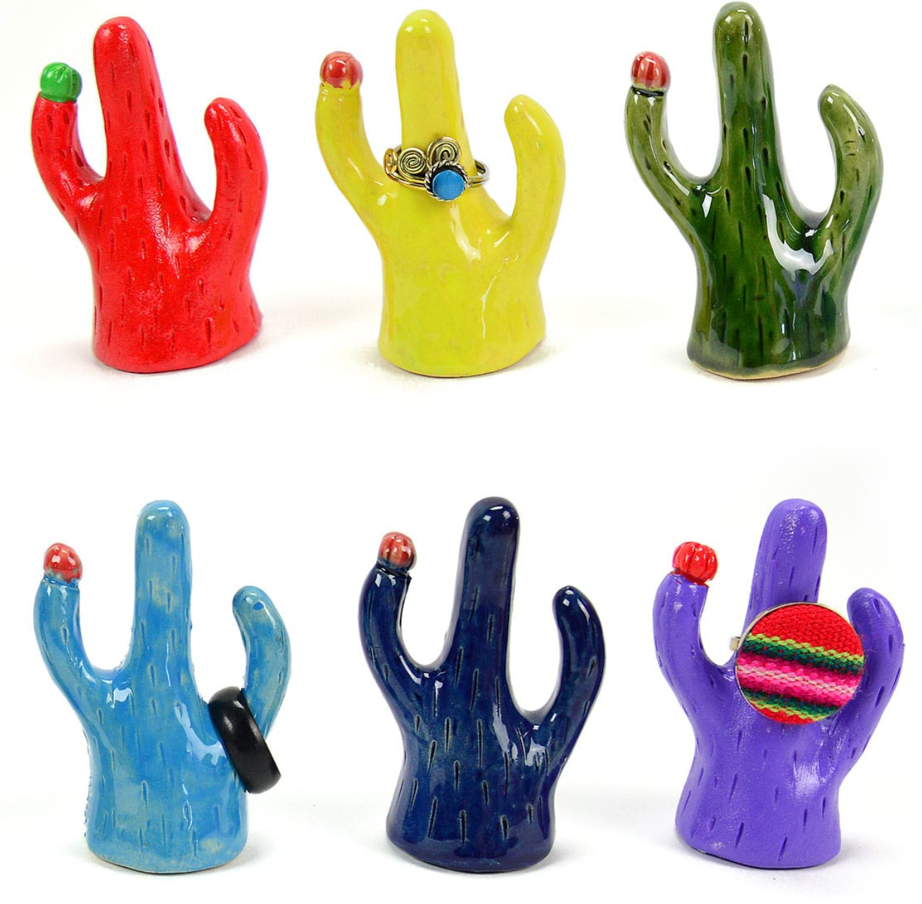 Ceramic cacti made for holding your jewelry and other trinkets! Comes in a variety of colors. Sold individually. Please inquire about current color selection. Made in Perú.
