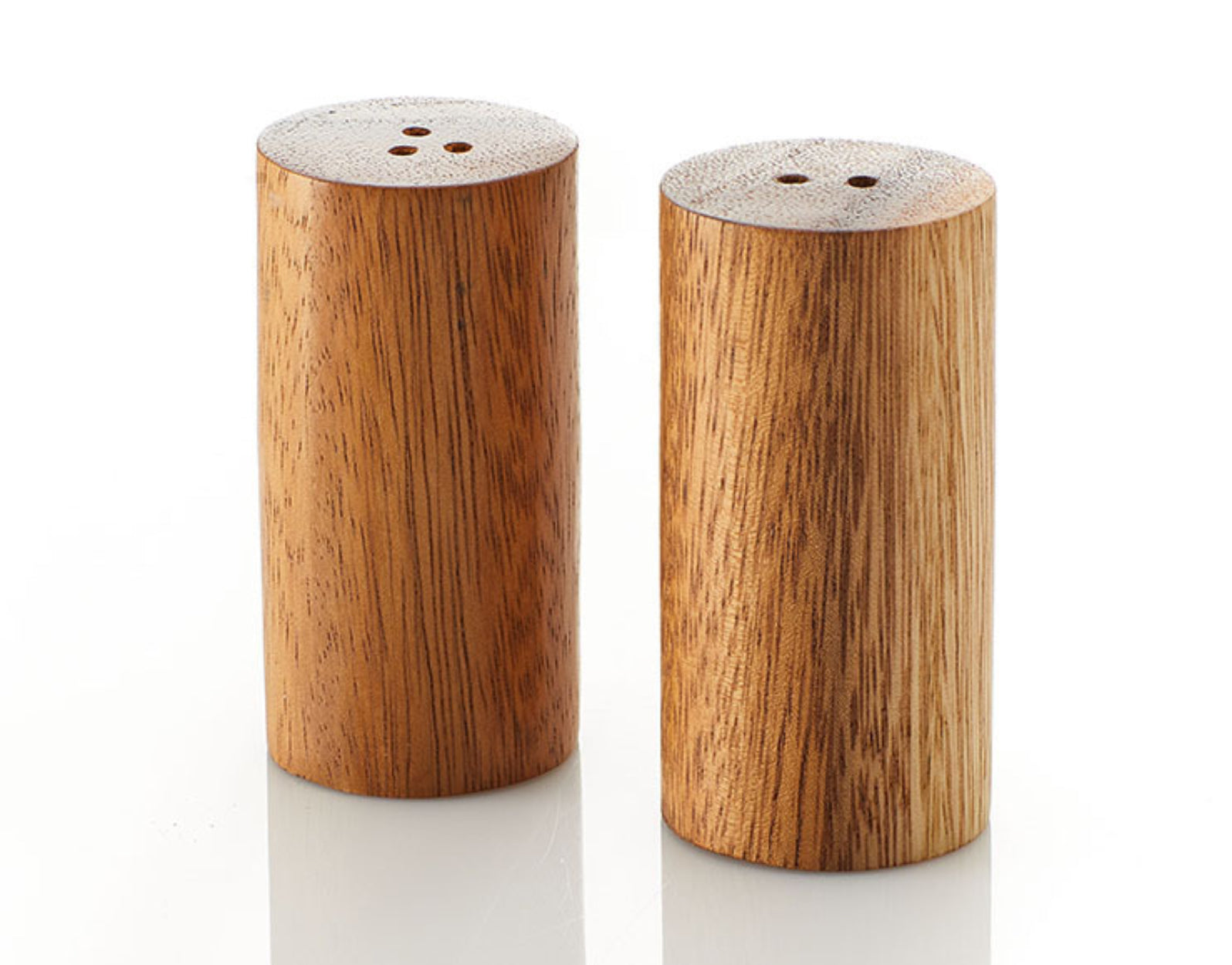 Sustainable suar wood is carved, sanded, and stained into these beautiful and natural salt and pepper shakers. Each shaker comes with plastic stopper in its base. Pair with other natural wood products for a coordinated kitchen! Set of 2 shakers.