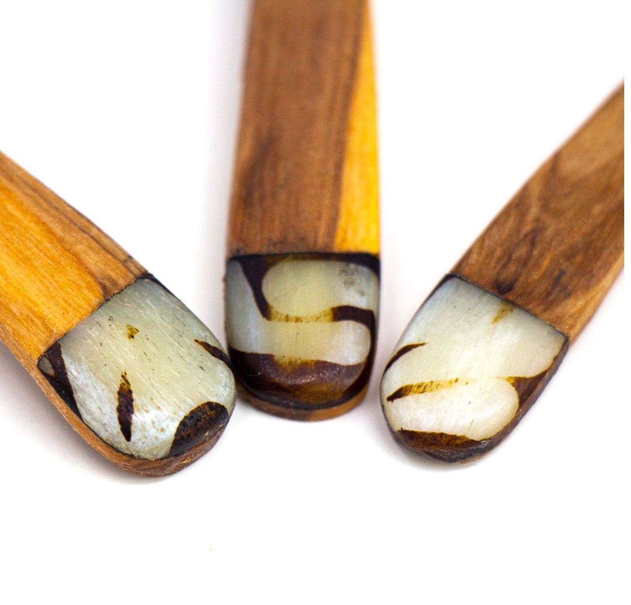 Artfully carved from a single piece of olive wood using simple hand tools by Kenyan artisans. The craftsmanship showcases the beautiful natural wood-grain and is accented with batiked bone inlay. No two are alike; variations are to be appreciated and enjoyed by the consumer. These petite scoops are great for serving nuts, appetizer, candies and more. SOLD INDIVIDUALLY.
