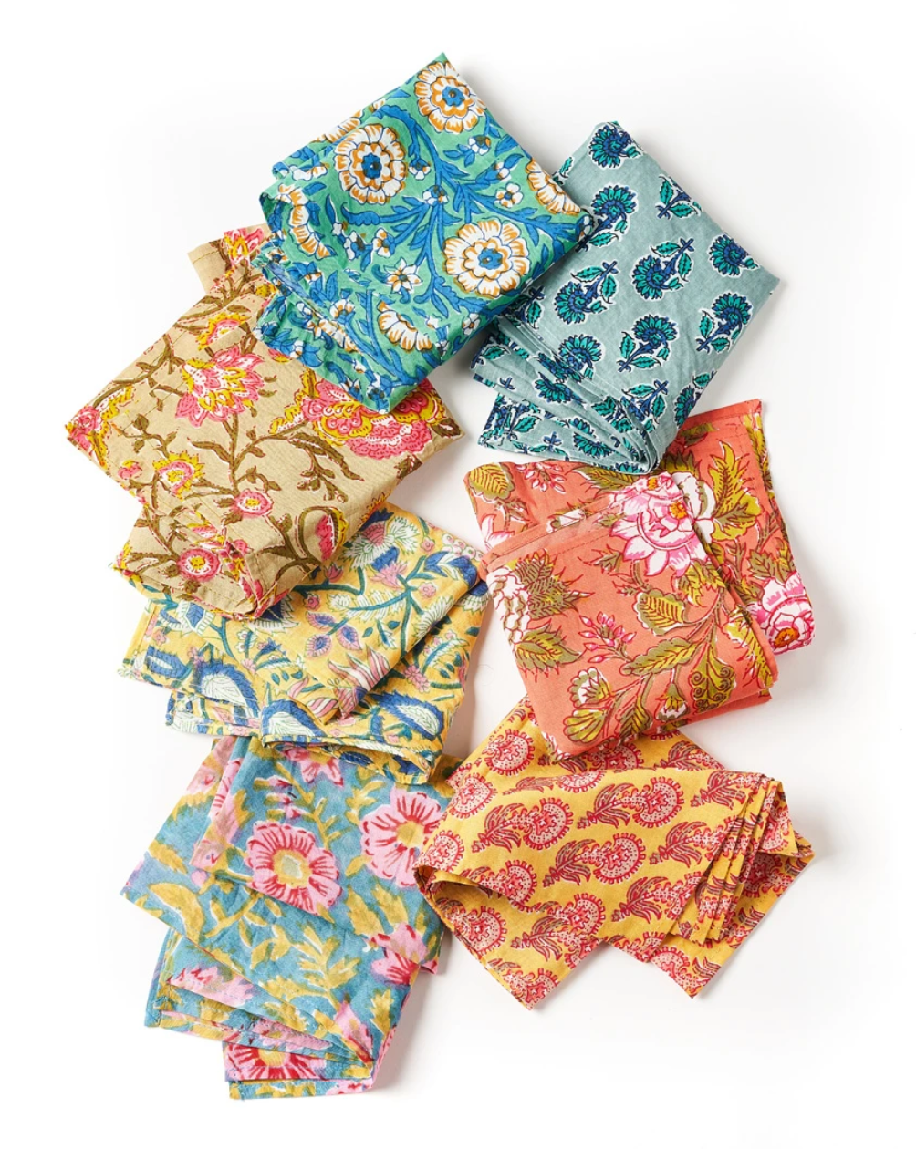 These handcrafted cotton bandanas give new purpose to block printed textiles in a fun, versatile design. Block printing is a traditional art form native to Rajasthan, India. Bandanas are expertly crafted from an assorted series of five inspired designs and neatly packaged on kraft paper. Upcycled design honors the spirit of sustainability and resourcefulness within local communities.