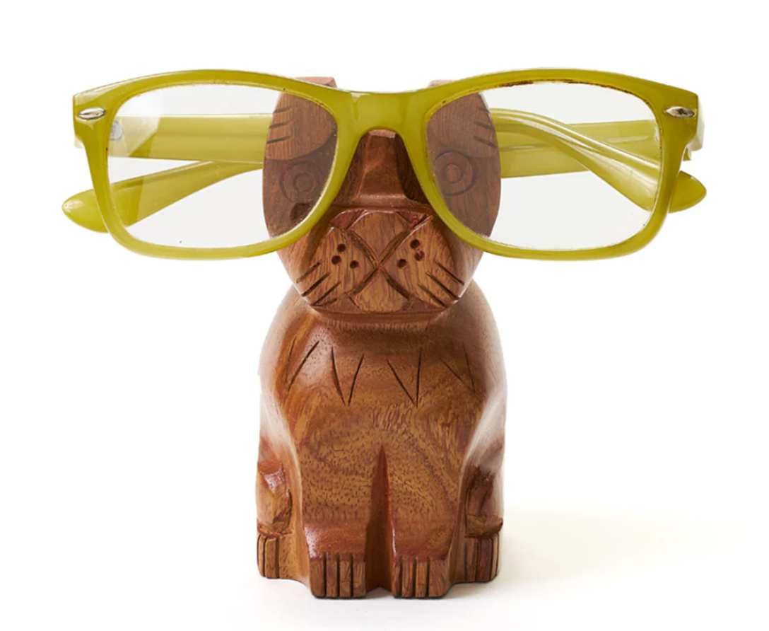 The Dog Eyeglass Holder Stand is hand carved by master artisans in India. Woodworking is an age-old artisan tradition, which can be seen in furniture and other items. Artisan makers apply these techniques to modern design, to create fun and functional gifts. Adding to our collection of eyeglass holders, the dog is a popular household pet and would make a great gift for a dog lover or simply for someone who wants to keep their glasses safe and within reach.