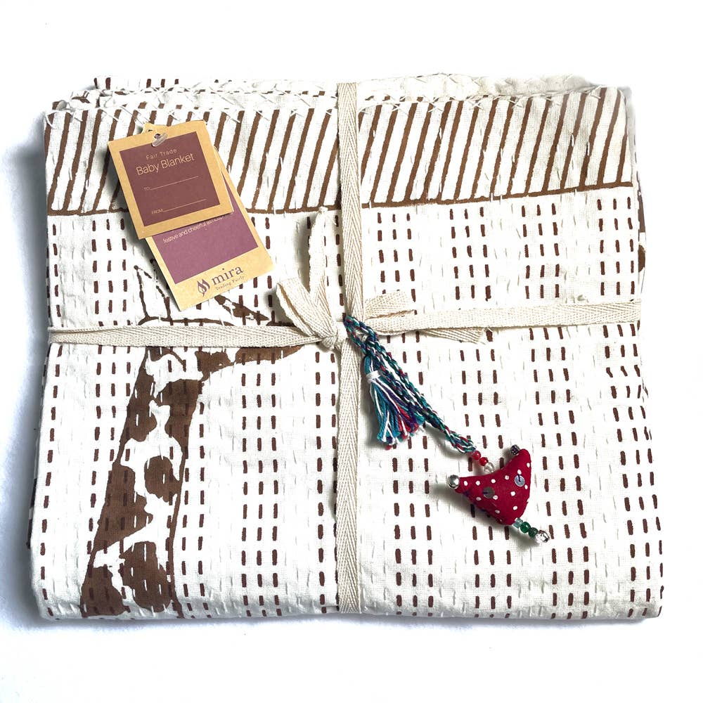 Block Printed Kantha Quilt - Giraffe Print