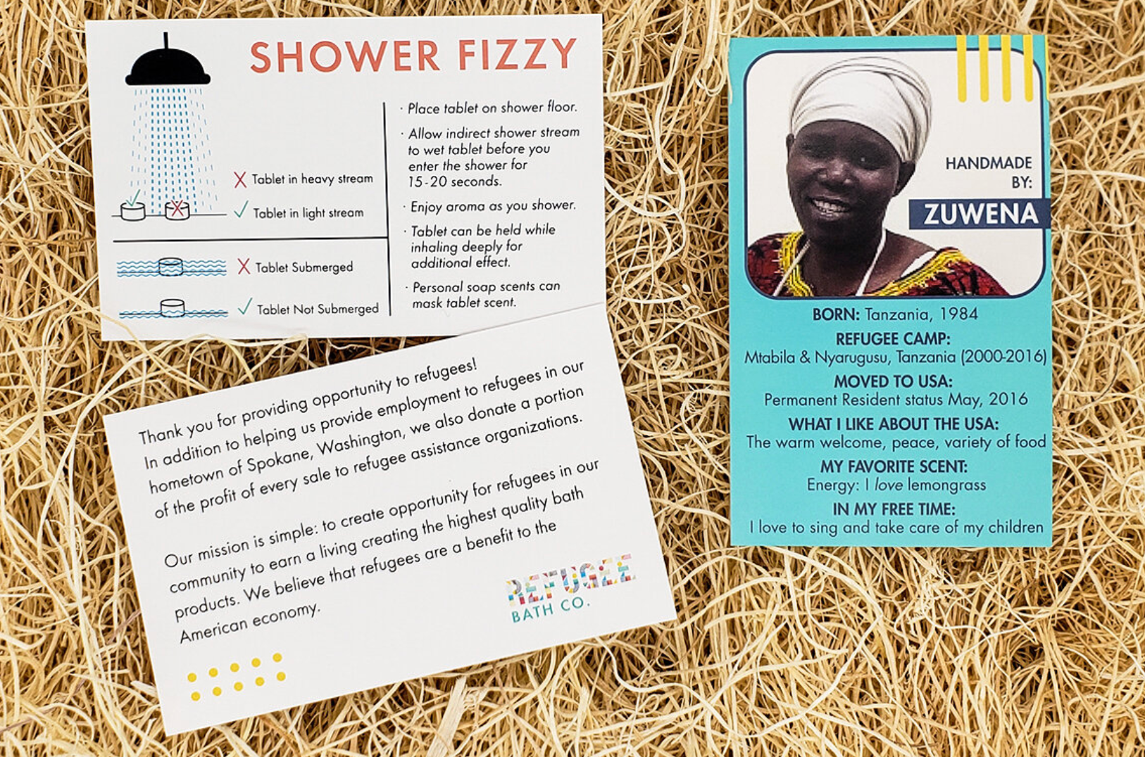 Awaken your senses with a refreshing shower if you don’t have time to take a bath! Our shower bomb steamers are each proudly hand-made in Washington State by former refugees in our community. We only use safe, natural, plant-based ingredients. Vegan and not tested on animals.