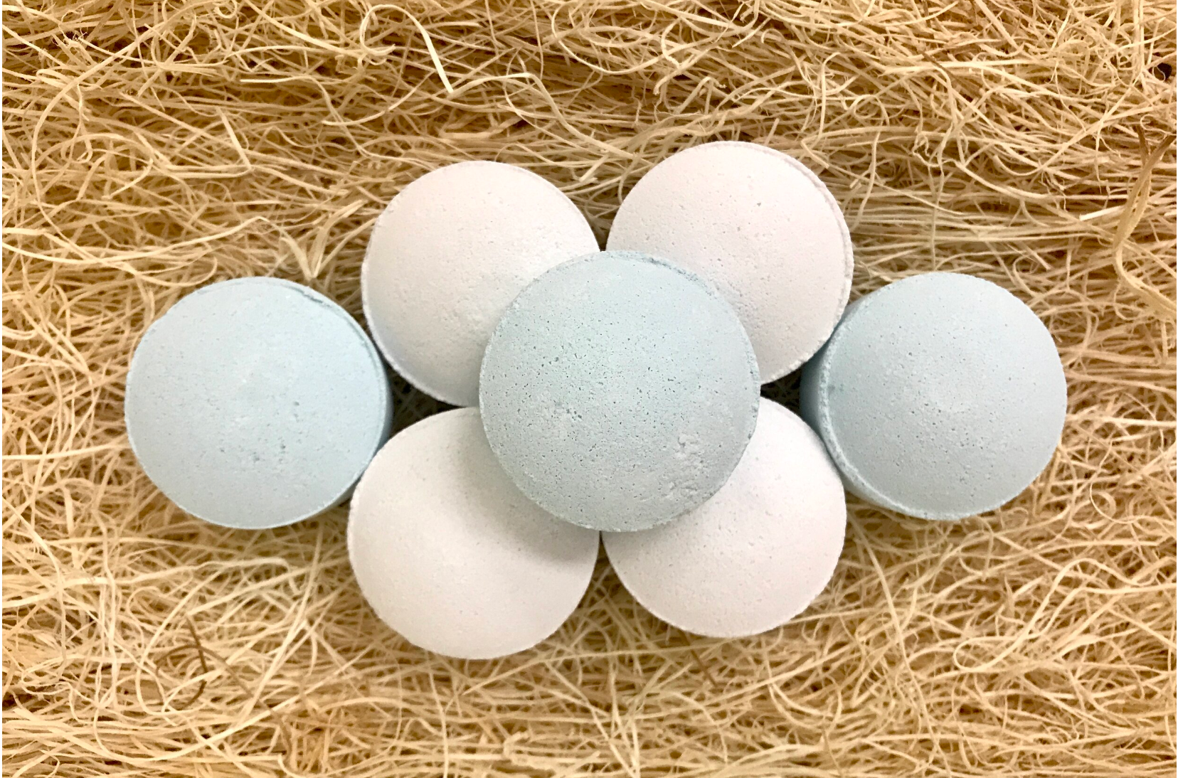 Made with sodium bicarbonate, citric acid, distilled water, Epsom salt, water-based colorant and essential oils.