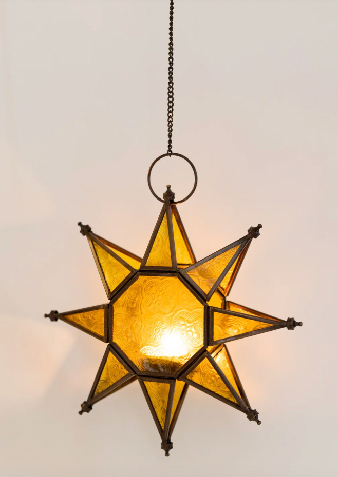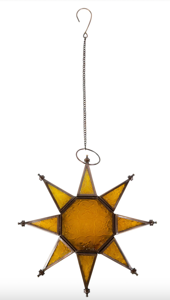 Charming ambiance-add a little starlight with this glowing glass-hanging candleholder featuring an antiqued copper finish. Handcrafted by artisans with Noah's Ark International Exports in India. What began in 1986 out of one family's home in Moradabad is now a business of 20 independent, fair trade workshops.