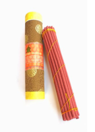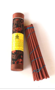 “This high quality incense has been composed according to an ancient Tibetan Medicine Incense making process by using only natural herbs minerals, holy water and holy soil. This incense is highly beneficial to all human beings and the incense can be used as offering to all types of pooja (prayer). Ultimately it helps to bring good luck, happiness and prosperity.” It is pure incense, there is no stick so it’s best to burn laid in a bed of sand