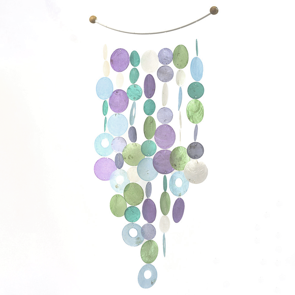 These chimes look great on their own or hung together with another one of different color for added dimension. Our capiz chimes are made up of a stunning array of shapes...