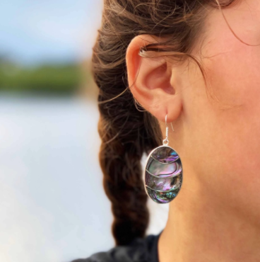 Handcrafted in high-quality alpaca silver by woman artisans in Mexico, these beautiful abalone shell earrings are set in skillfully designed metalwork.